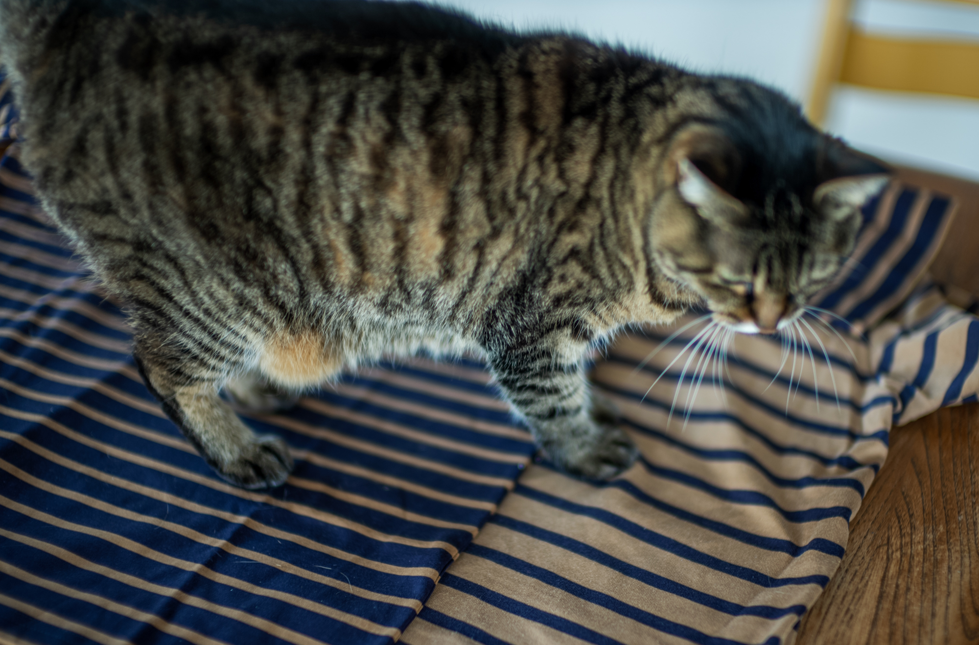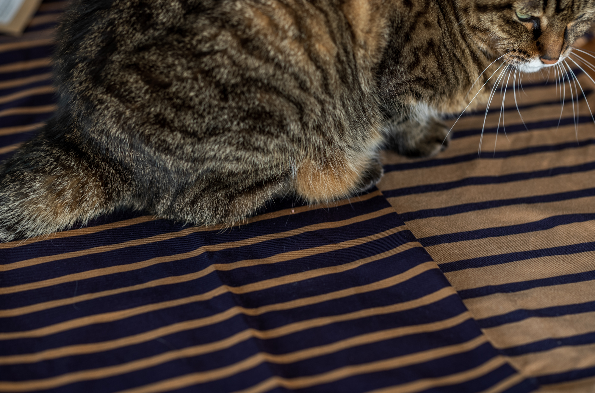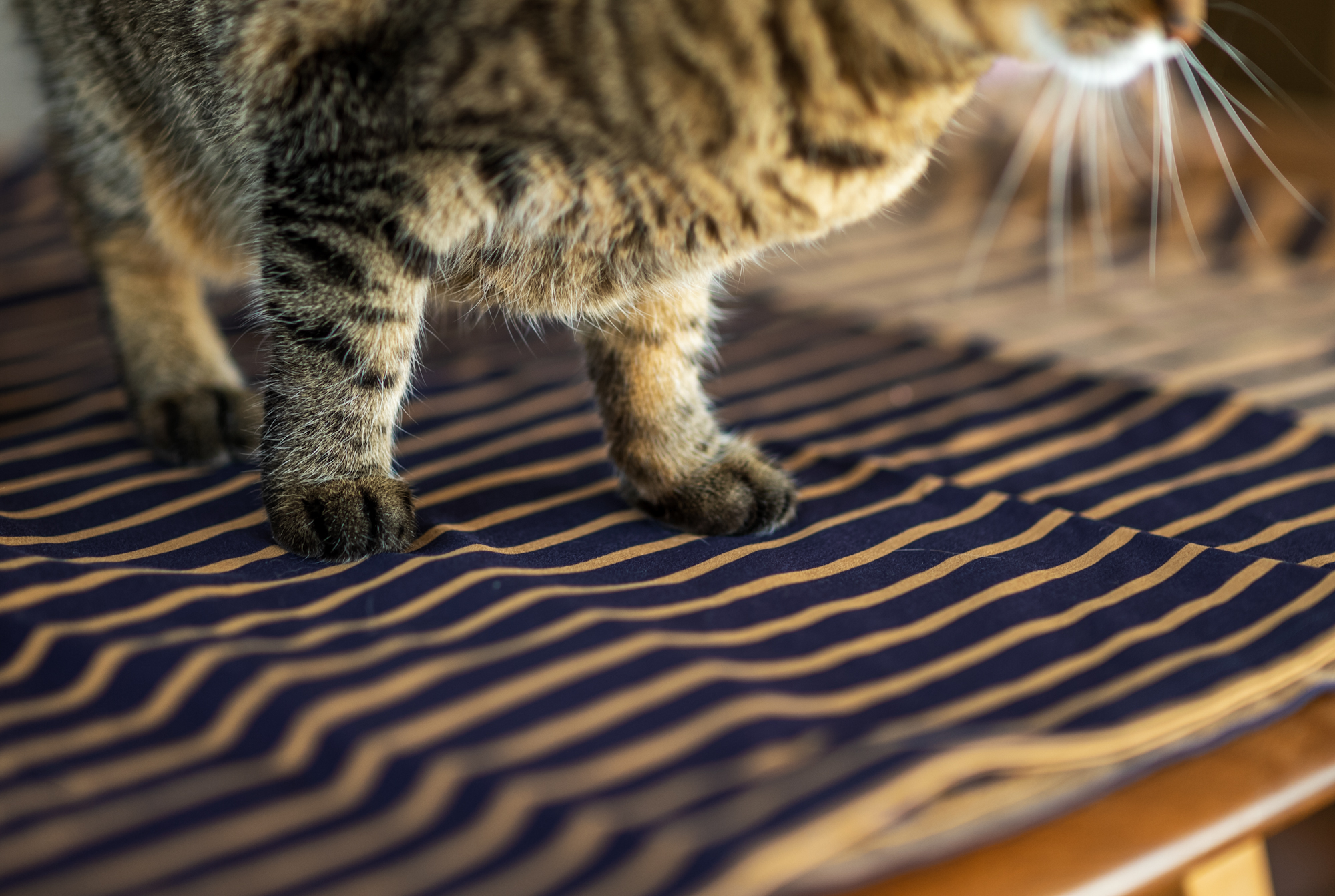 そんなトラちゃんを眺めてると柄が身体に比べて脚はピッチの細かいボーダーなんだなと再確認。