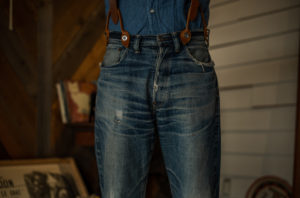 In order not to make the belt loops look mismatched with the jeans, we have payed some extra caution to the detail. I’ve looked for some sample trousers in the same era and have referred to the detail this time.
