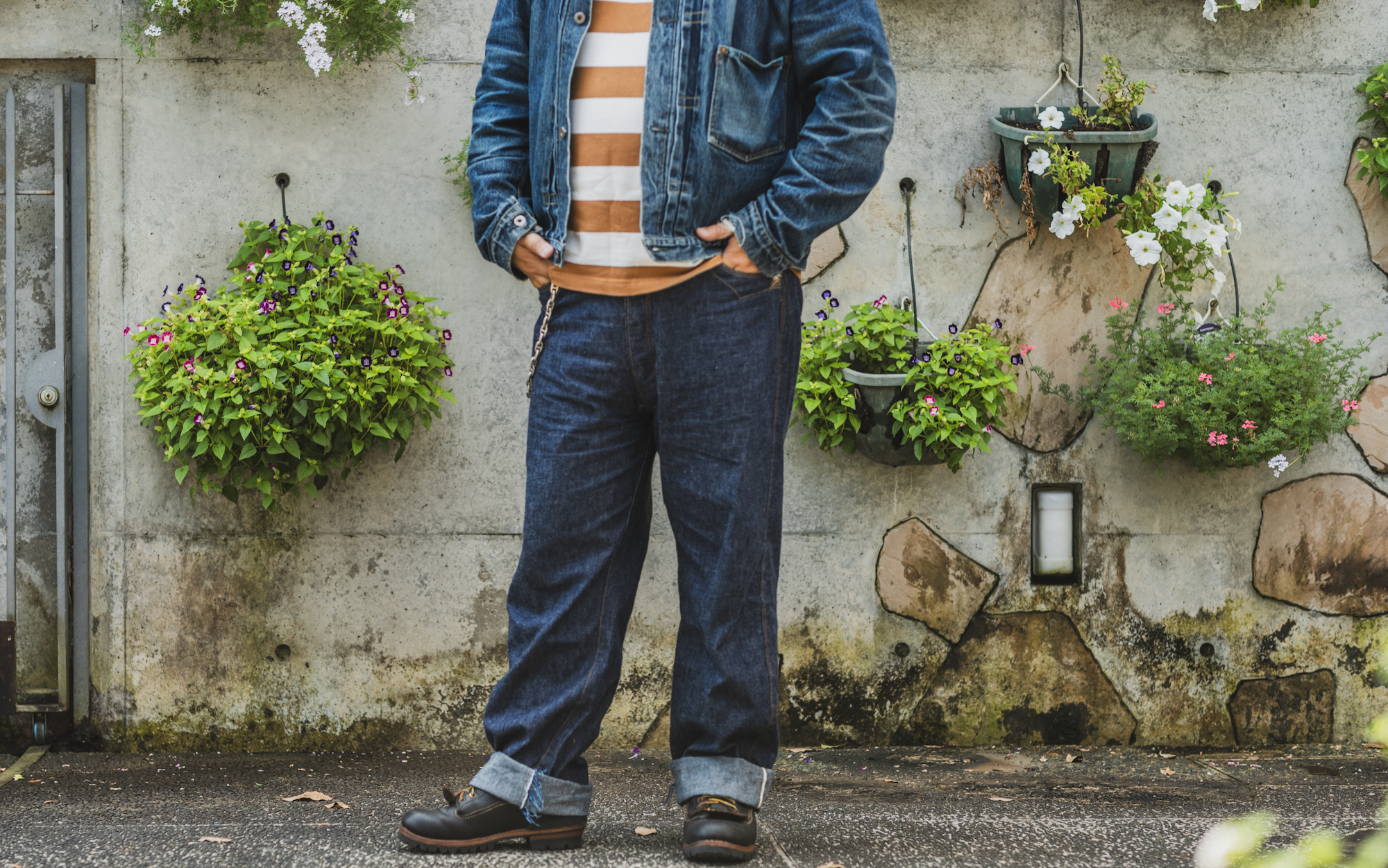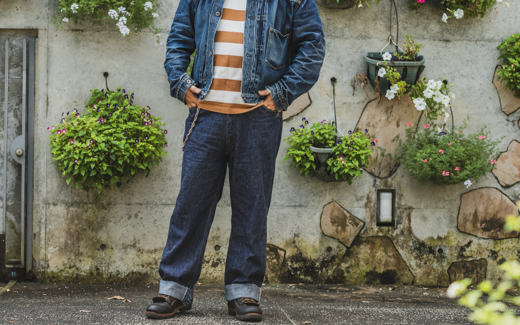 I have been wearing the Good Luck Jeans these days. It’s 9 oz fabric but it still has some crispness and is breathable enough to wear the hot and humid summer in Japan.
