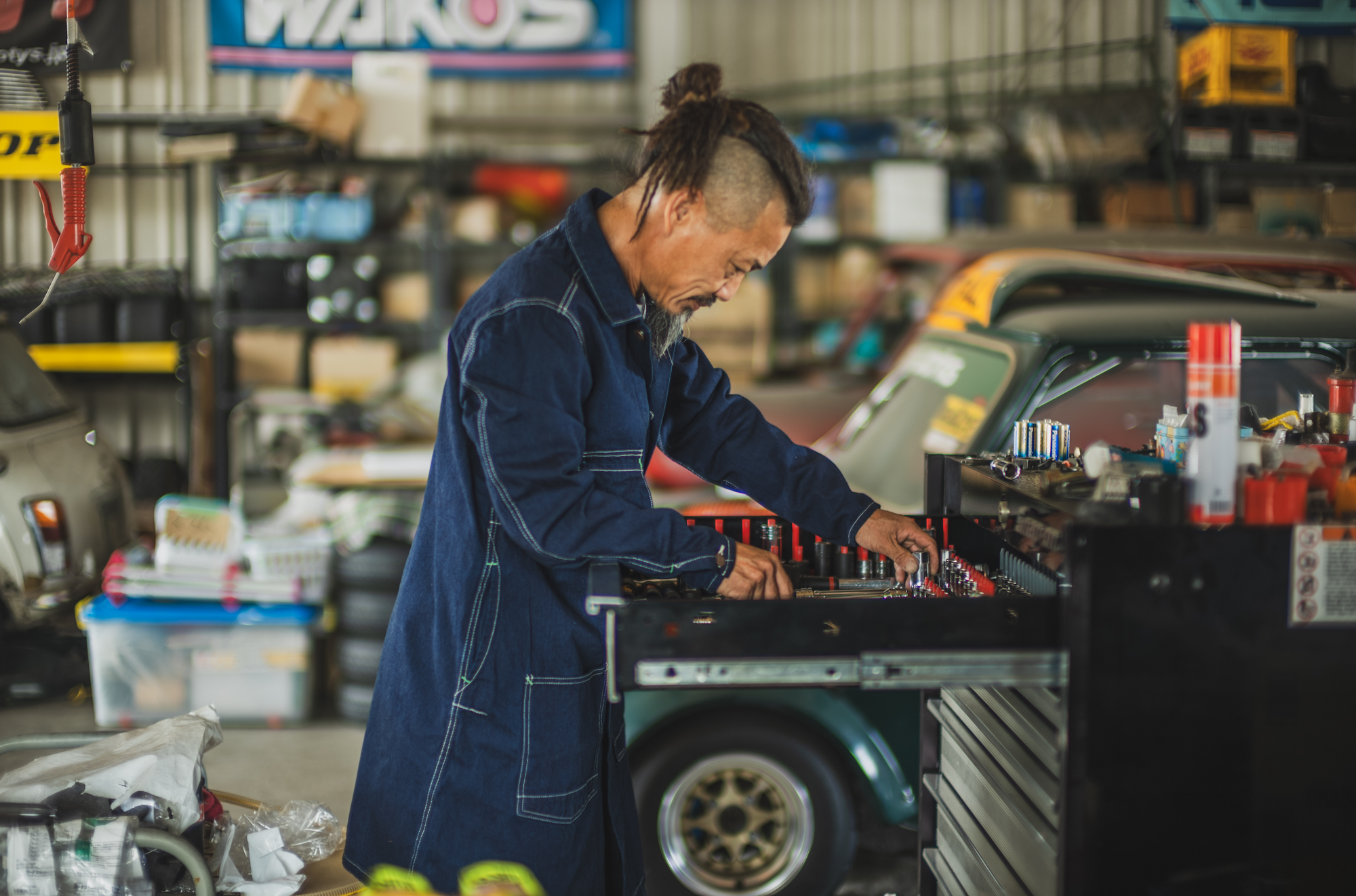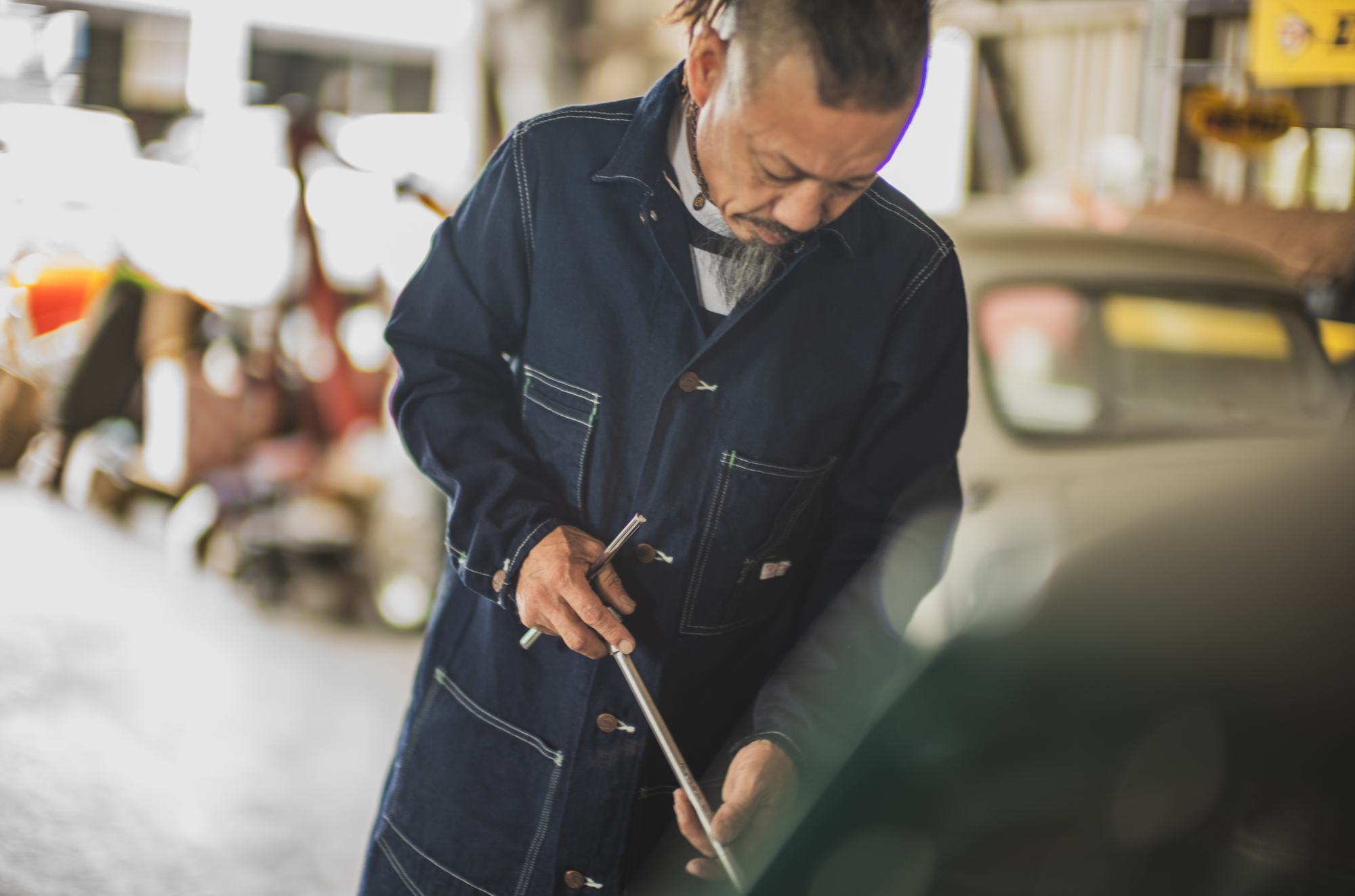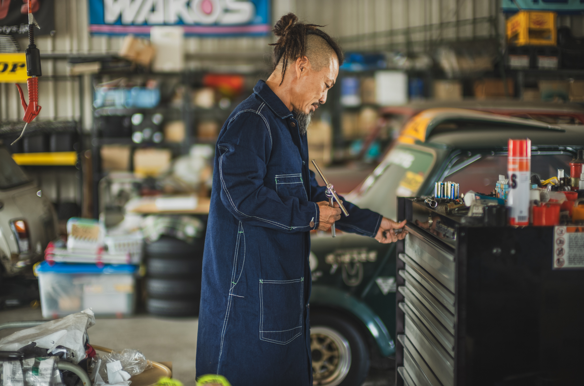 It’s said that workers wear these coats in order to hide the dirty or oiled work wear inside when customers come to the shop. But I personally like to shop at stores run by workers/sellers just like TCB does!