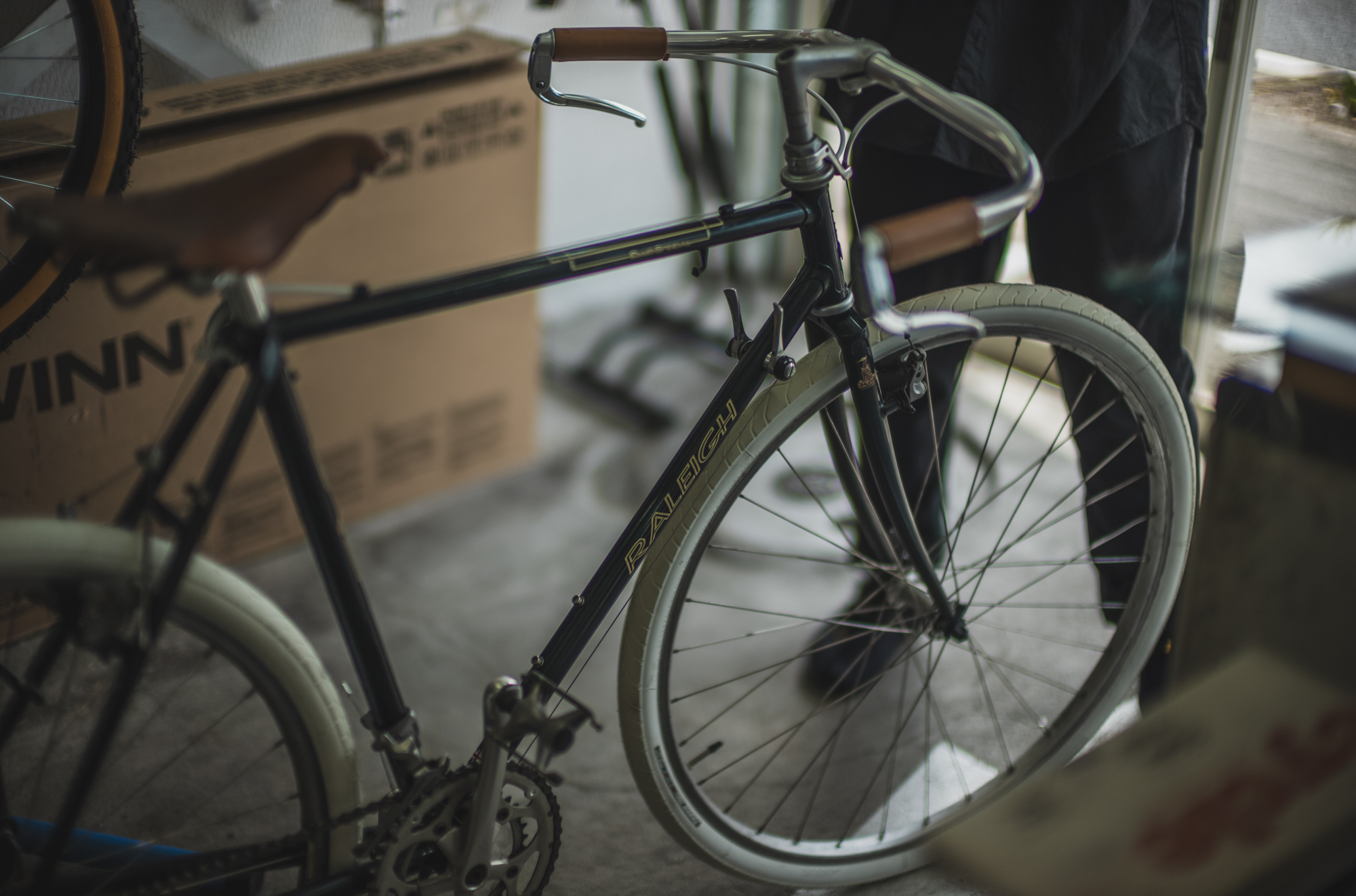 完全に自宅のインテリアと化してますが,この度会社に放置になってた古いRALEIGHを購入先でも無いのに知り合いのレストラン&バイシクルでオーバーホールして頂きました。