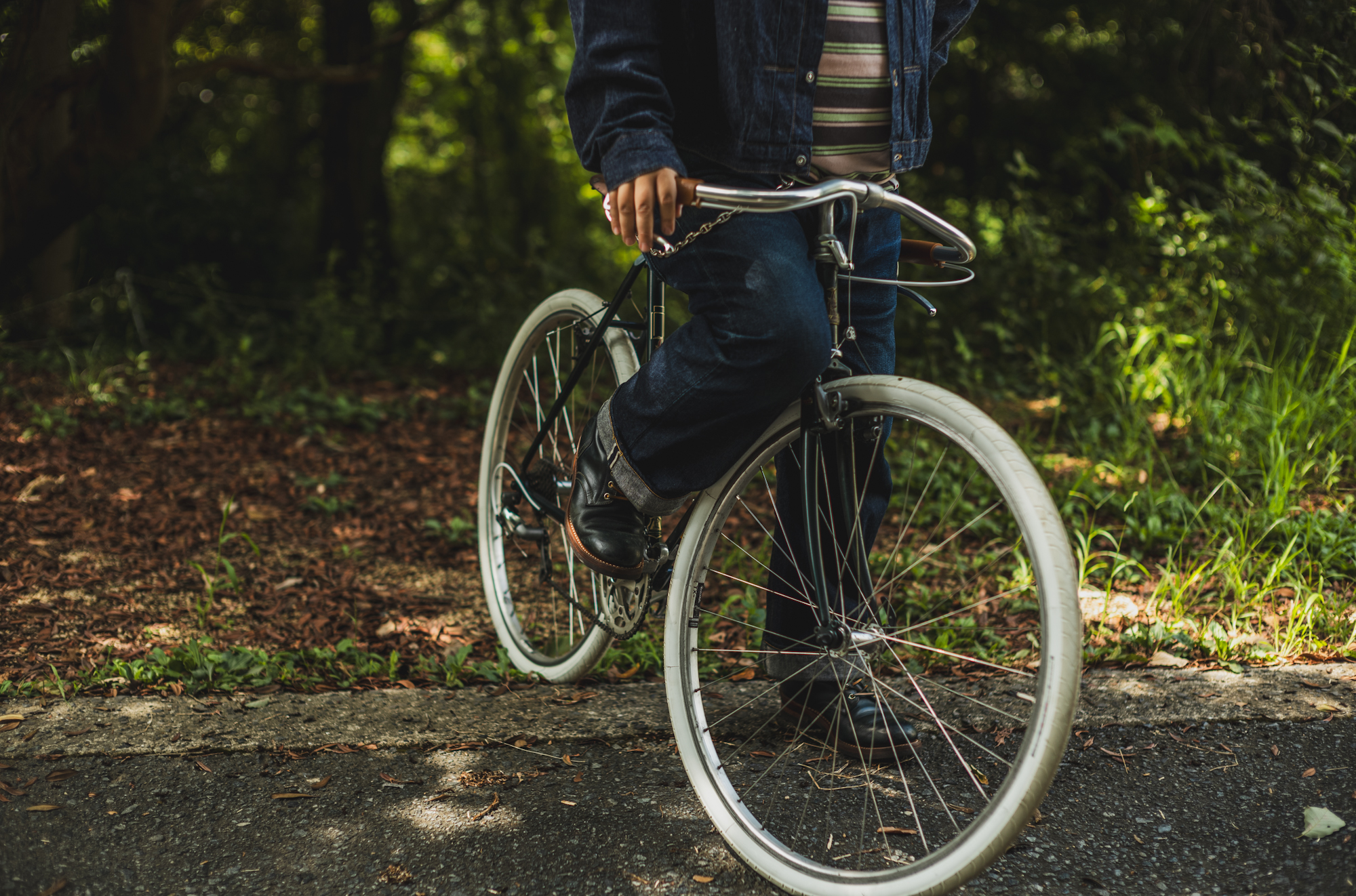 ドロップハンドルの姿勢が辛かったので、ハンドルを自作で鬼ハンドルにするか悩んだんですが古いバイクで見かけるバーエンド側から始まる仕様にして貰いました。結果ドロップハンドルのポジションとほぼ変わらなかって無いのは内緒ですが…..