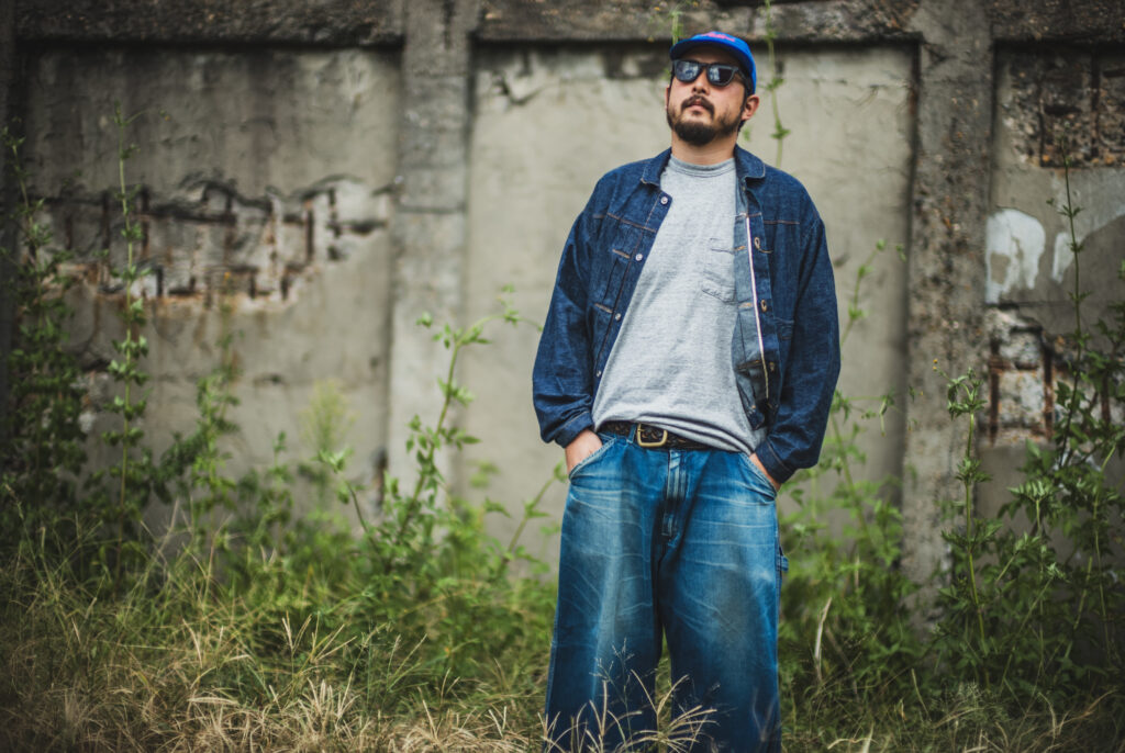 1サイズアップ気味を緩く穿いてるのが彼特有のスタイル。