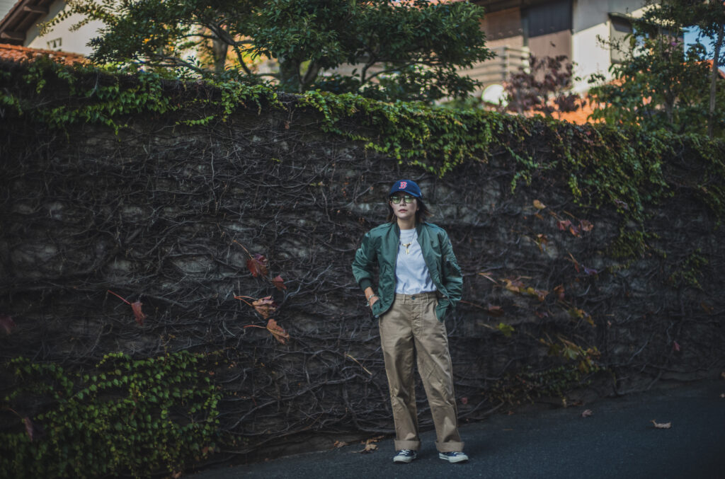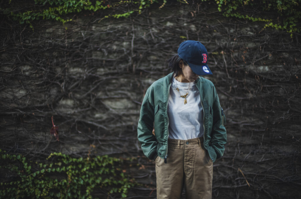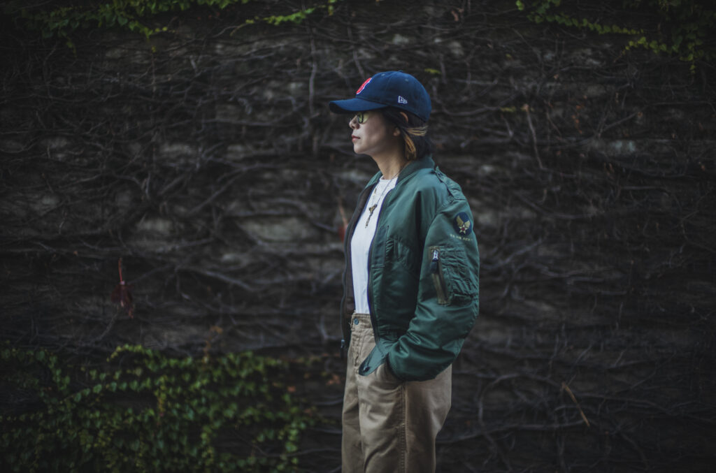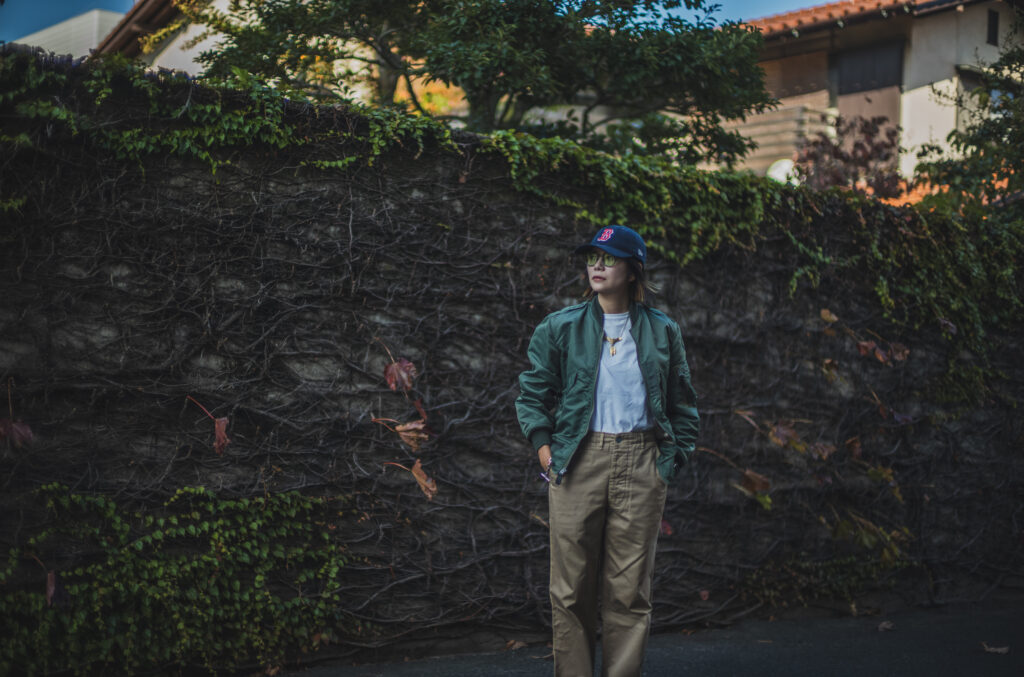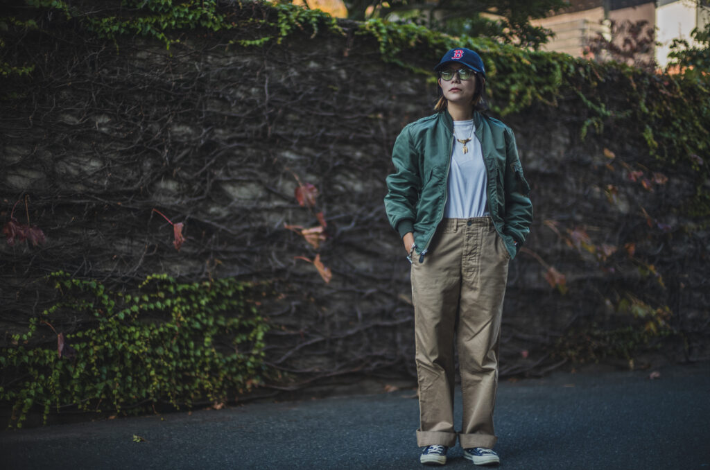 軍チノに合わせるか合わせないかは置いといてLEONのマチルダ好きとしては女性が着用するフライトJKって良いですよね。