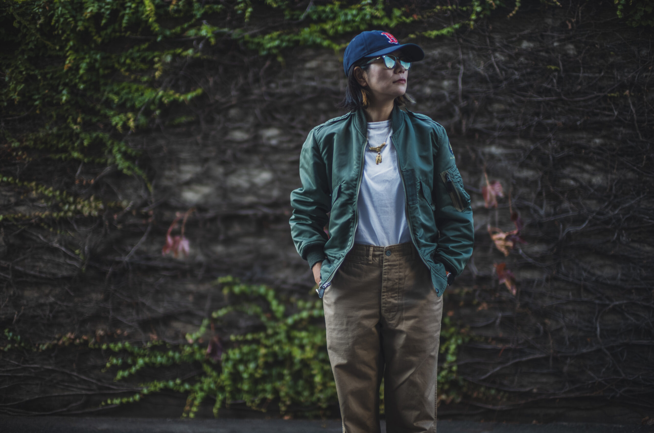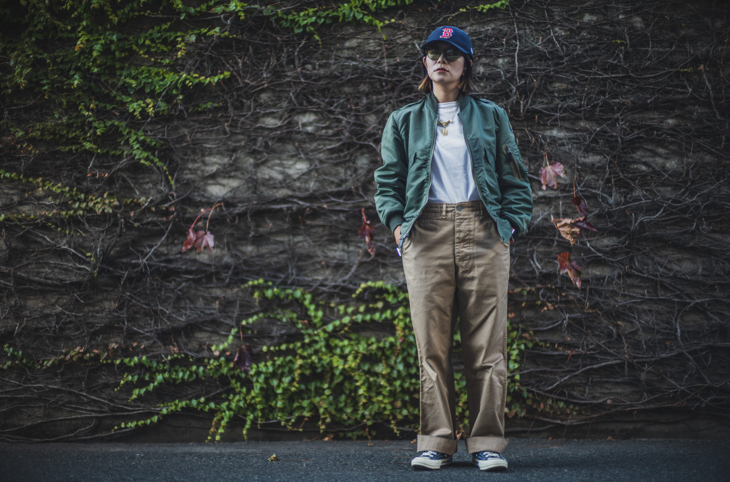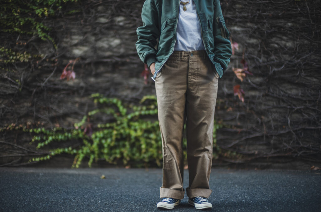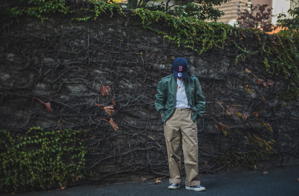 軍チノに合わせるか合わせないかは置いといてLEONのマチルダ好きとしては女性が着用するフライトJKって良いですよね。