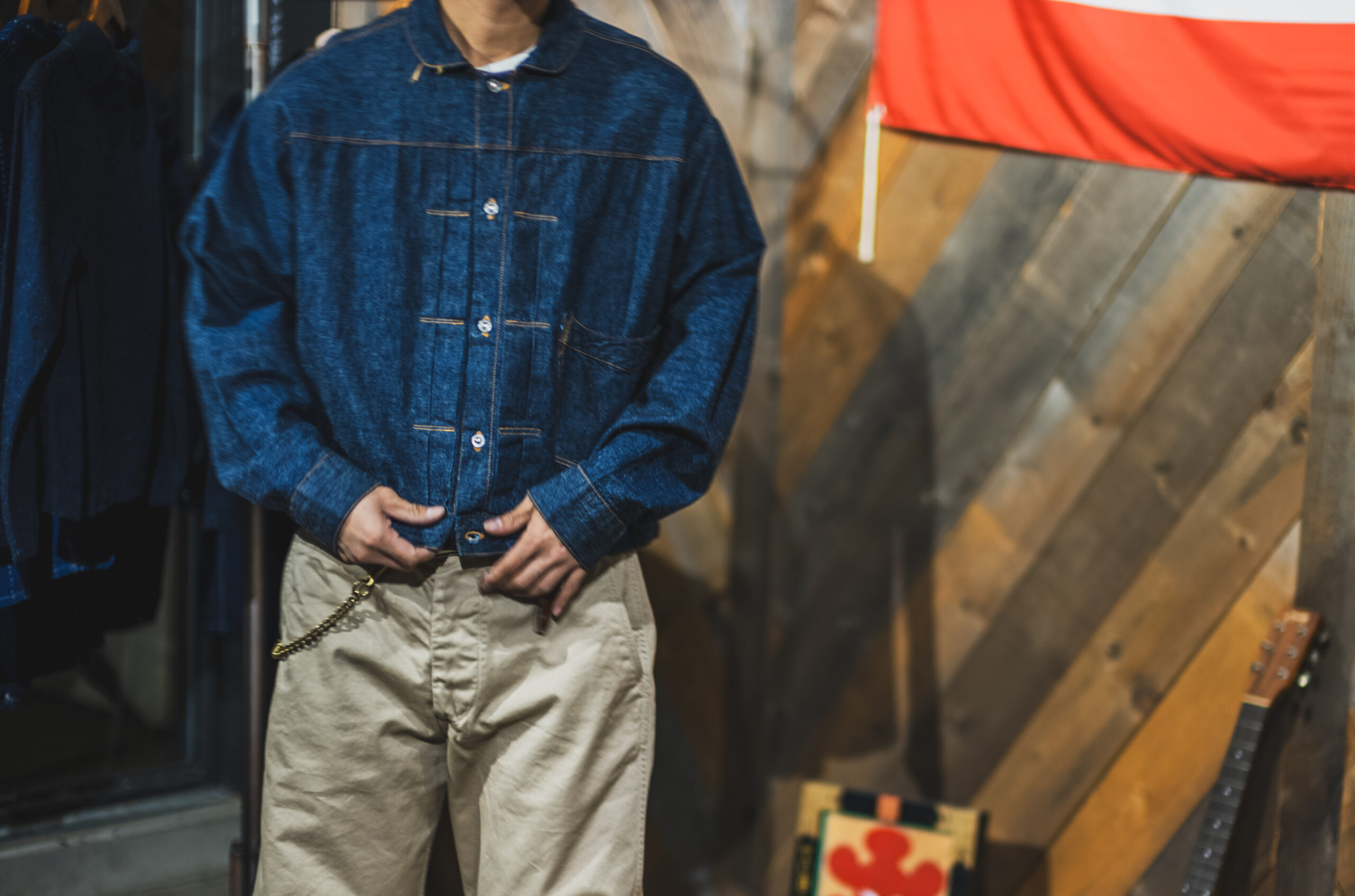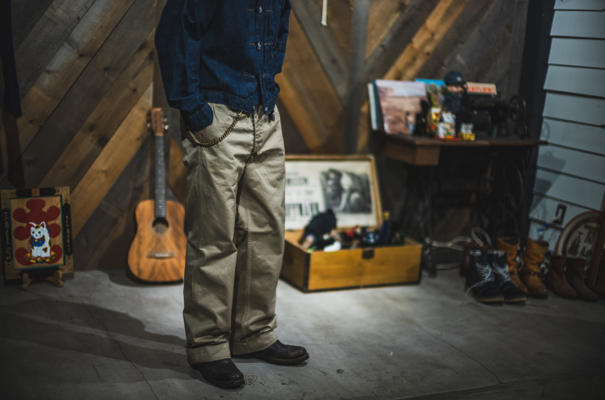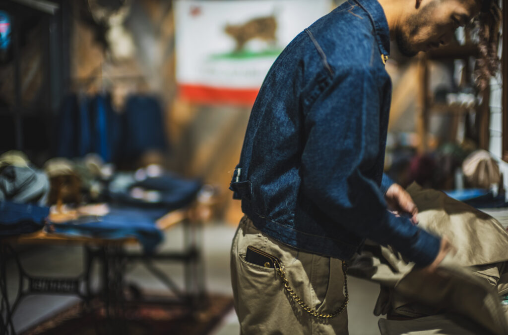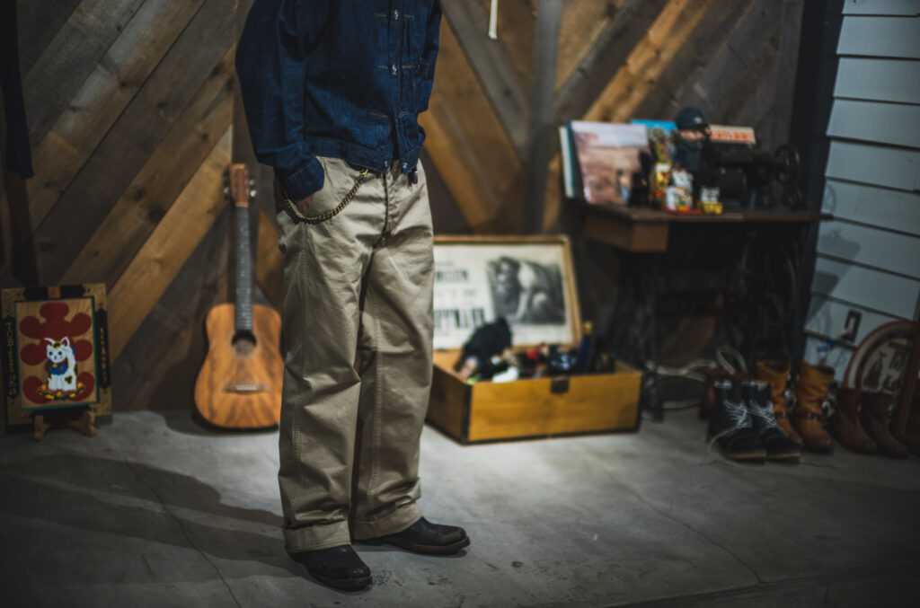 Hemlock Fukui-san is my good friend. For the workers in Kojima, denim is so universal that even these standard chino pants look fresh to us. Good Luck & Stay Gold chino combo looks classic and all good! The pre-order for the chino will finish on 31 Oct.