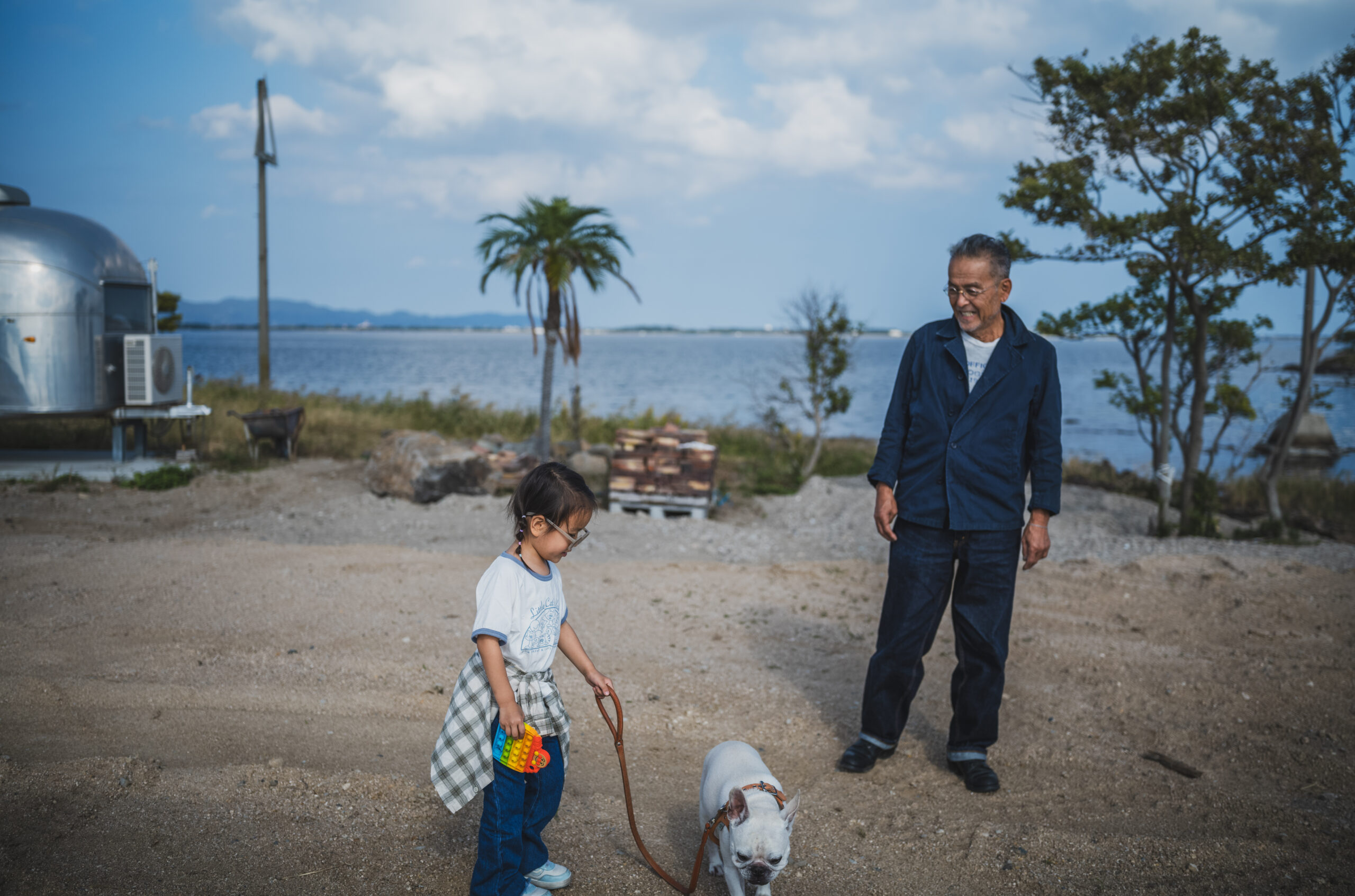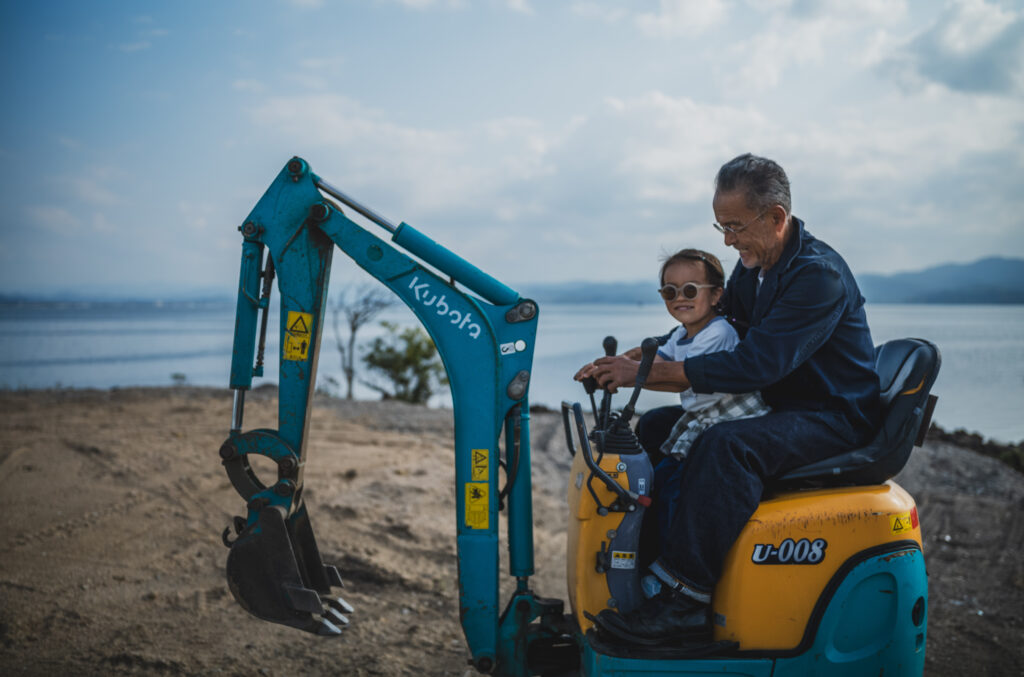 Moto-san was teaching her how to drive a shovel car and make a sand mountain and it seemed really exciting for her.