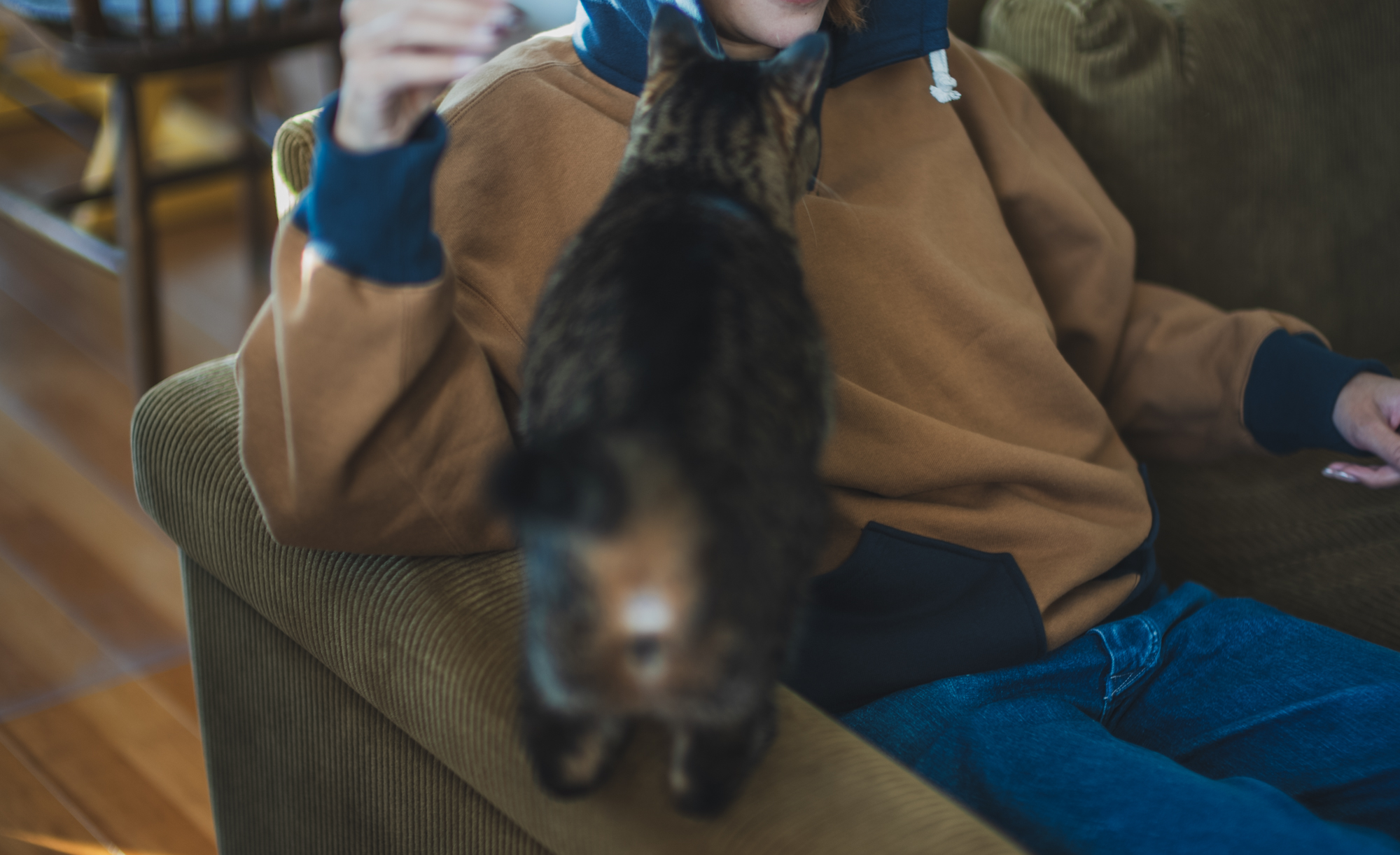 The Workers exclusive 15 oz fabric has soft and cosy brushed lining and my cat likes the feel too;)