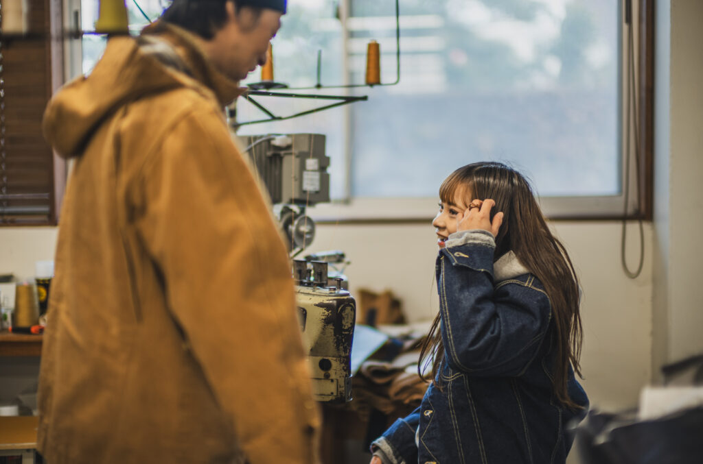 そんな事は創業以来初めての事だったので、とても嬉しく専務が普段メインで使ってるミシンに座って貰って写真を撮ったらパパよりフォトジェニックだったという面白い出来事が有りました。