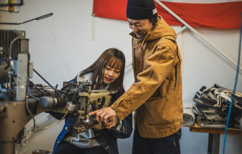 The other day the son of our production manager took his foreign friend to TCB and it was the first time his son visited us and that made me happy. Also what was funny was that he looked more photogenic in front of sewing machines than his dad does.