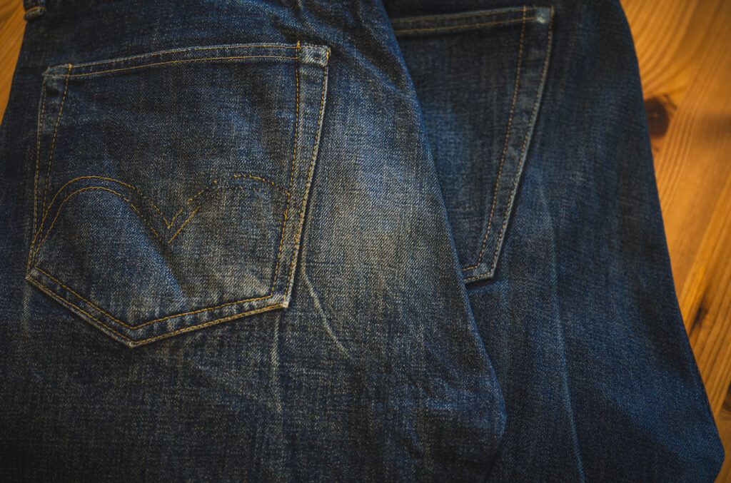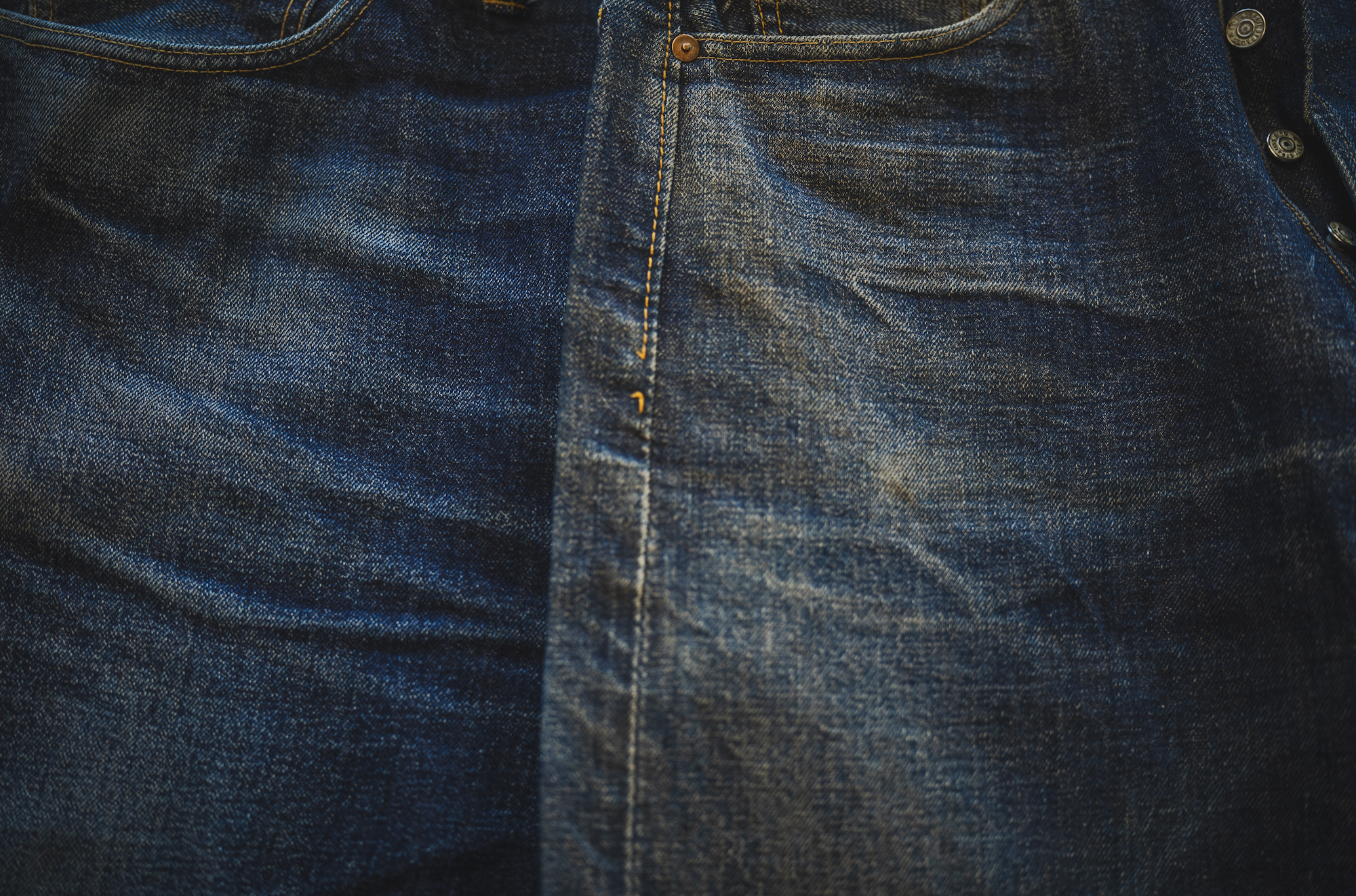 The dot like fade resembles the vintage jeans fade.and I think we did a good job on the fabric. Also the rounded and roomy top block is the iconic detail on this pair we also carefully reproduce.