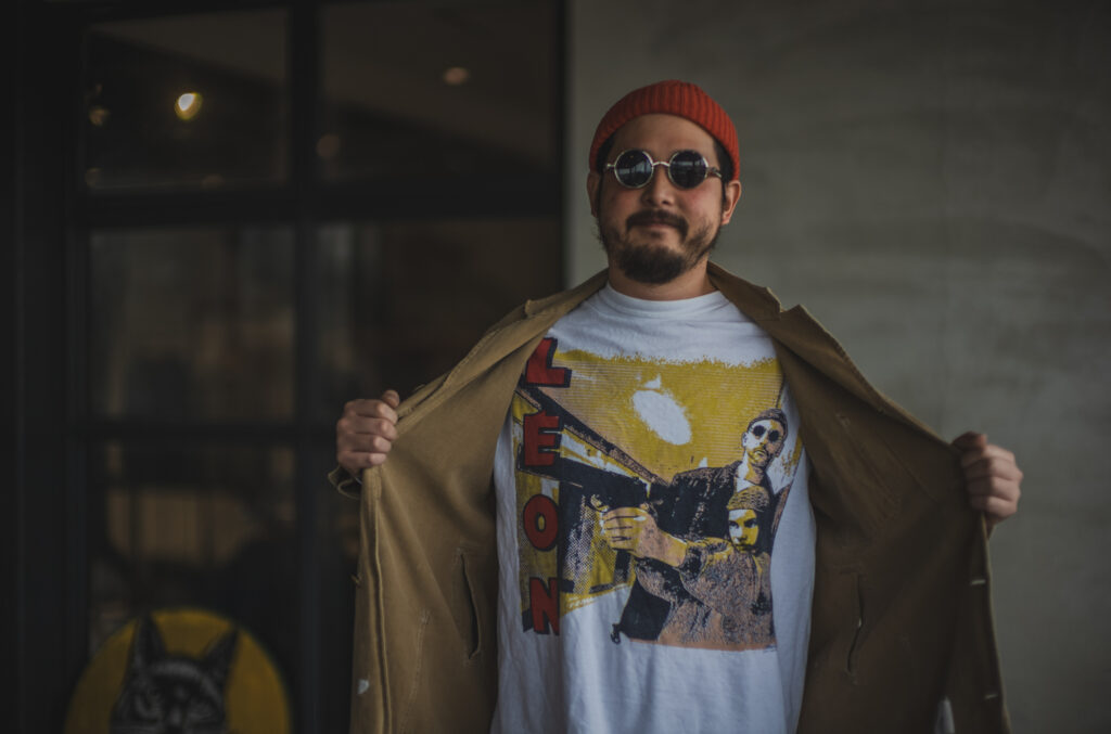 って丸メガネにニット帽を被ってジャンレノ気取り。