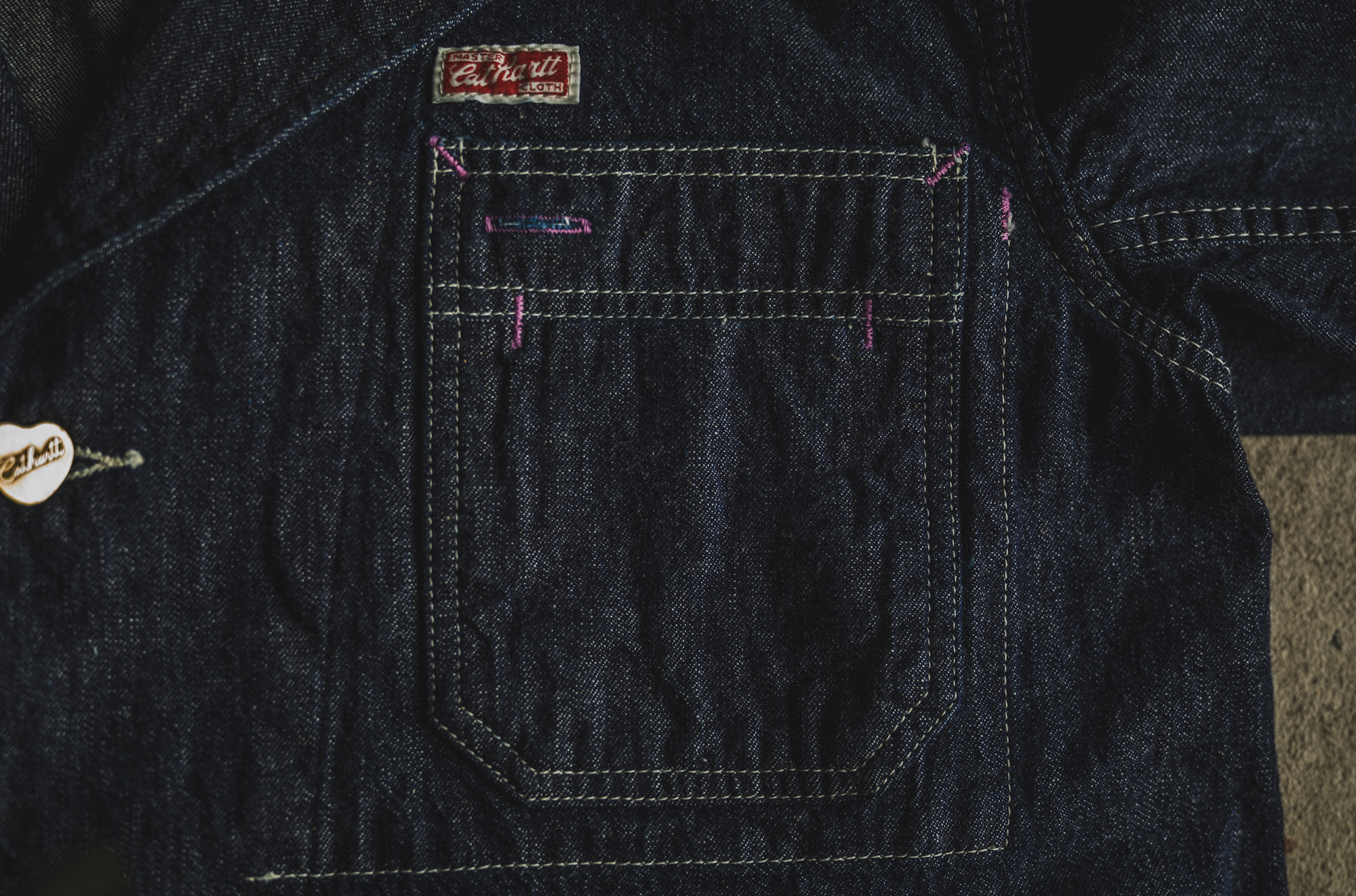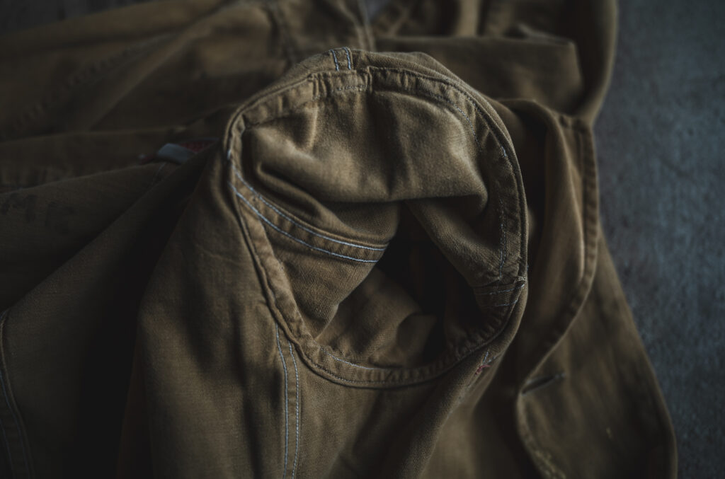 On our reproduction this time, we’ve adopted some more unique vintage designs added to it such as the dual pocket of Uncle Sam, the chainstitch seams on the shoulders like on vintage denim jackets, and the heart-shaped buttons from the 20’s Carhartt.