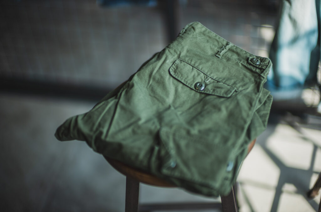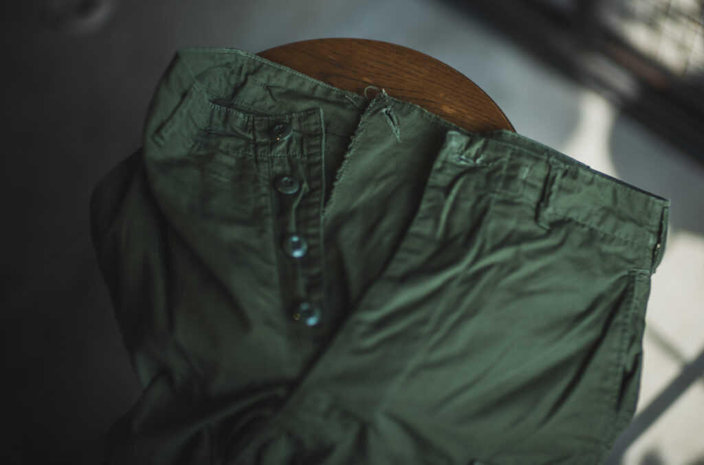 It was designed to be worn under the hot and humid weather in Vietnam in the 60’s and the pants were made of cotton poplin. Of course so are TCB repro pants. Fade is also nice on these pants. the left is new and the right is worn for 3 years.