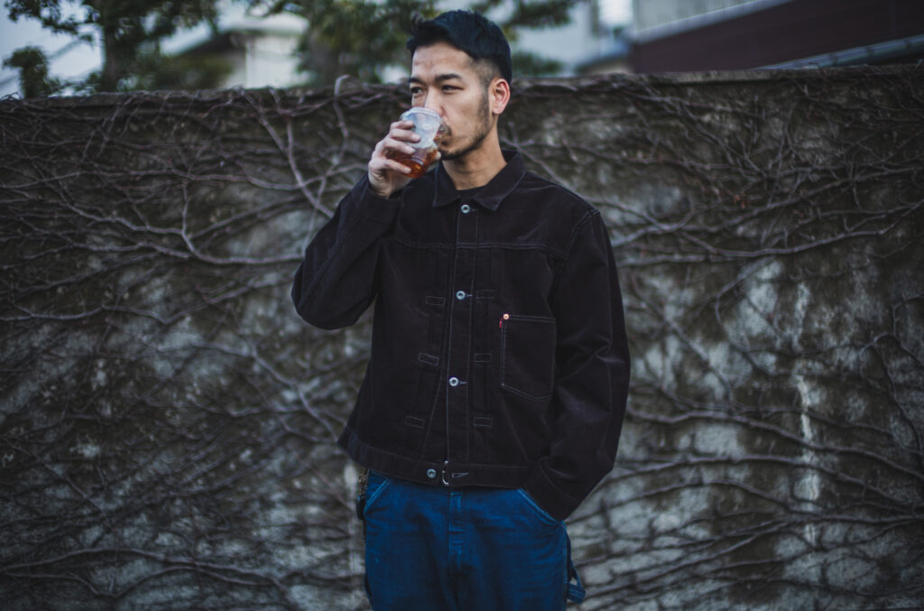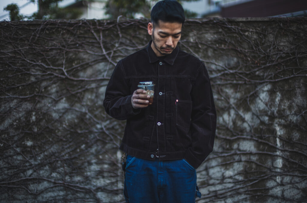 大半の方がTCBで購入するかどうかを検討頂く際に写真を参考する方が多いと思うのでそれは大変だと思い、Black Cordsを着ながらBlack Coffeeを飲んで貰い比べてみました。