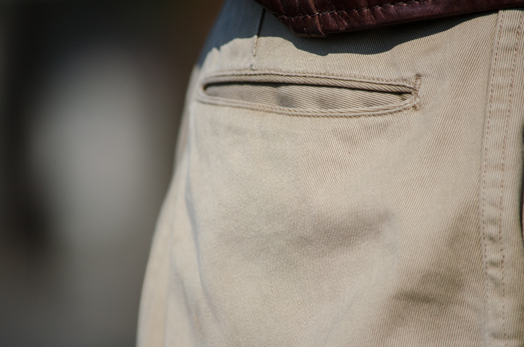 The last picture shows the vintage ones and you can see how loose the pocket opening is. There’s not much about fading on these chino but you can find some different enjoyable aging process.