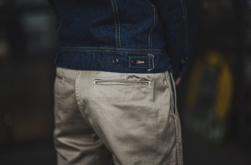 後ろの両玉縁ポケットの口が半開きの通称モミ玉が素敵なTCB STAY GOLDチノの生産予定が組めましたので予約受付を開始させて頂きます。