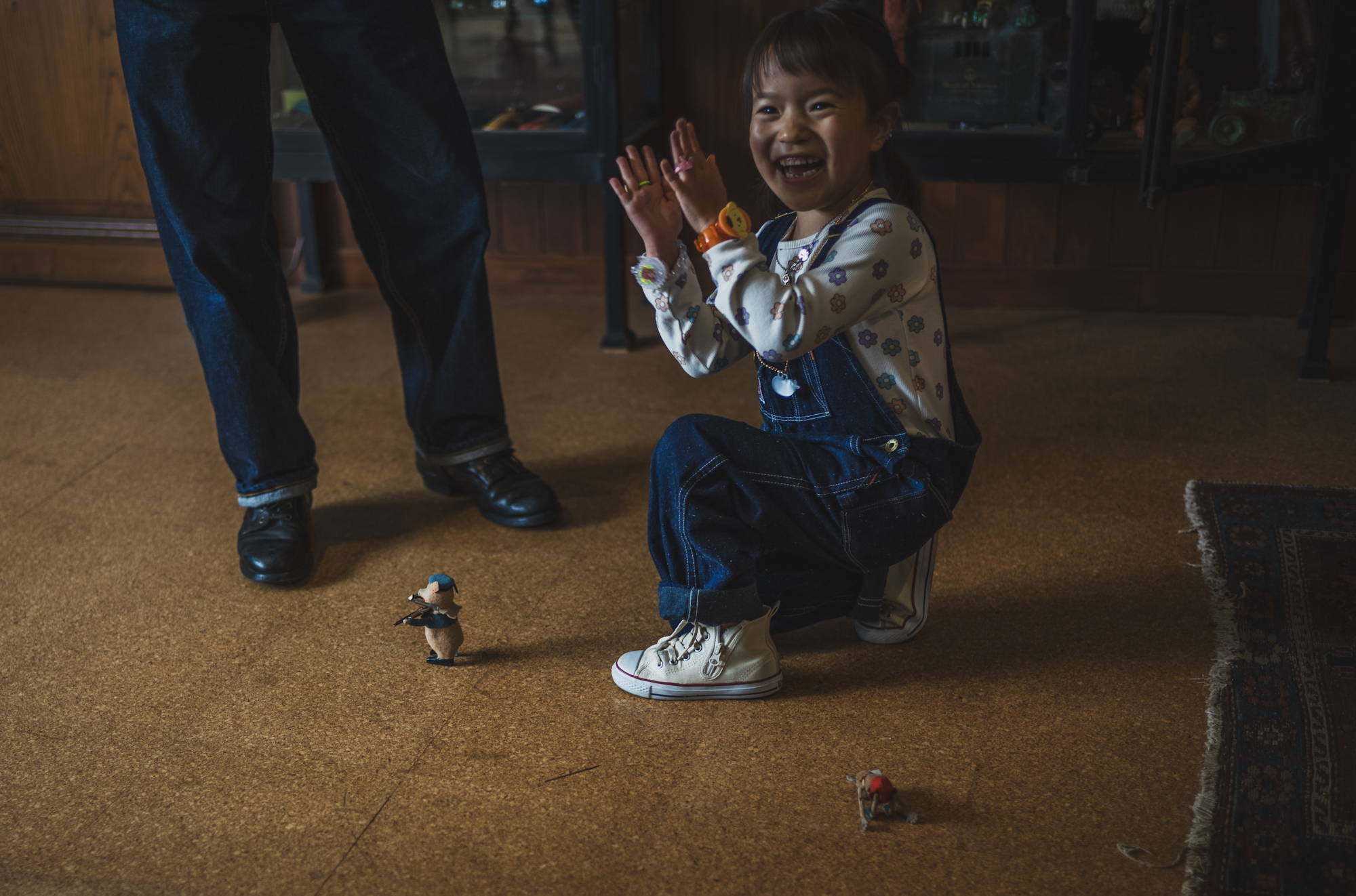 I vowed in my heart to continue proudly delivering Japanese craftsmanship to the world as I looked at the toy that moves with a clockwork and my daughter playing with them, who has a bright future.