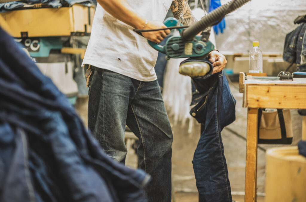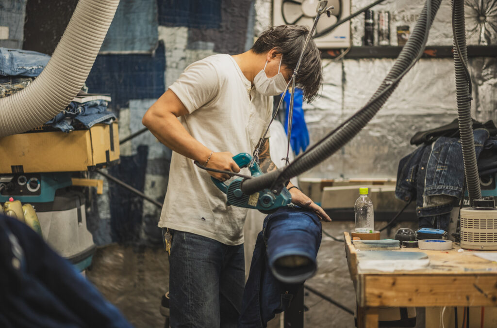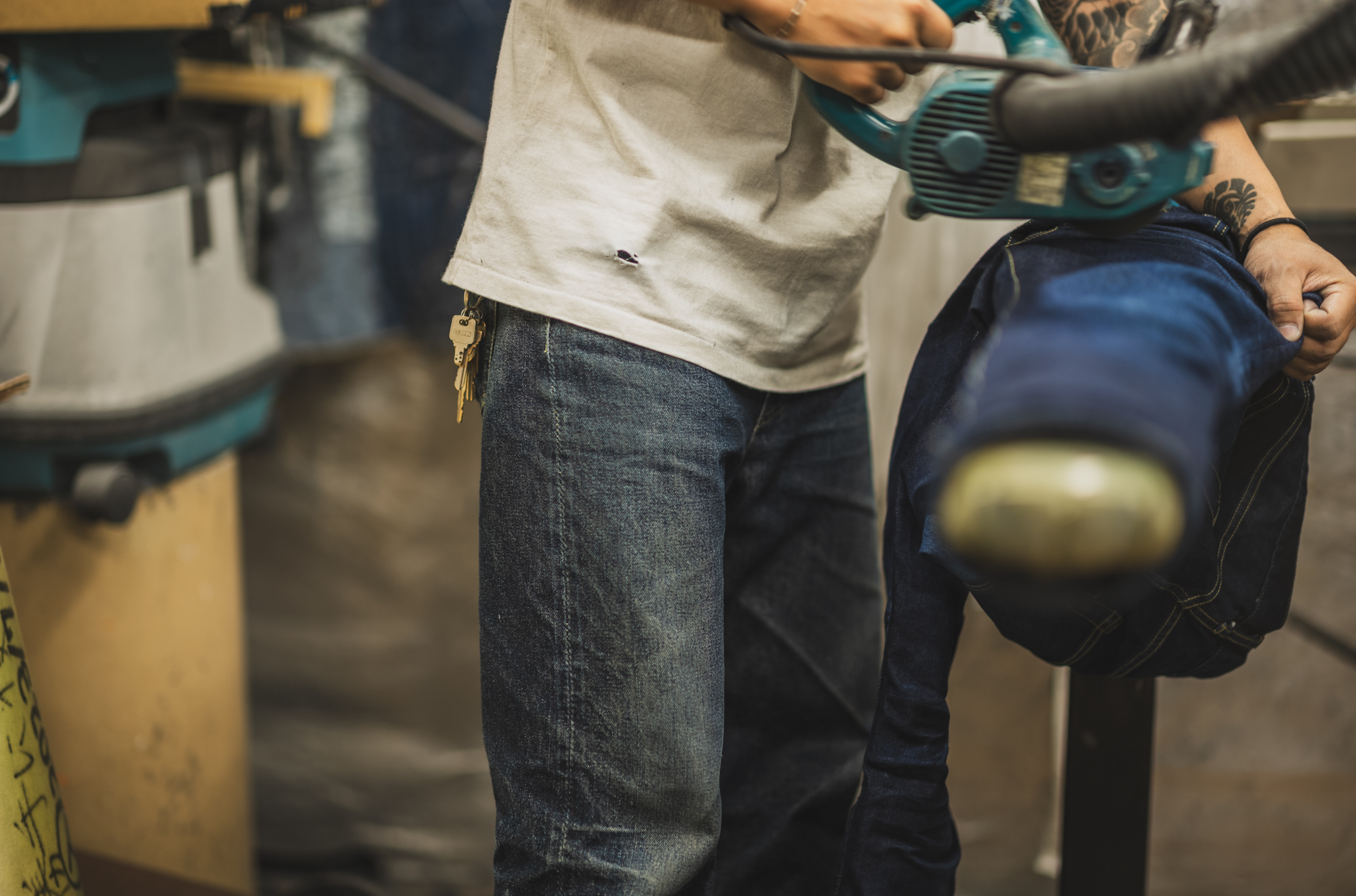 ジーンズを1本1本手で擦りVintage加工を施す仕事をしてるイモト君が着用してるS40’sJeans
