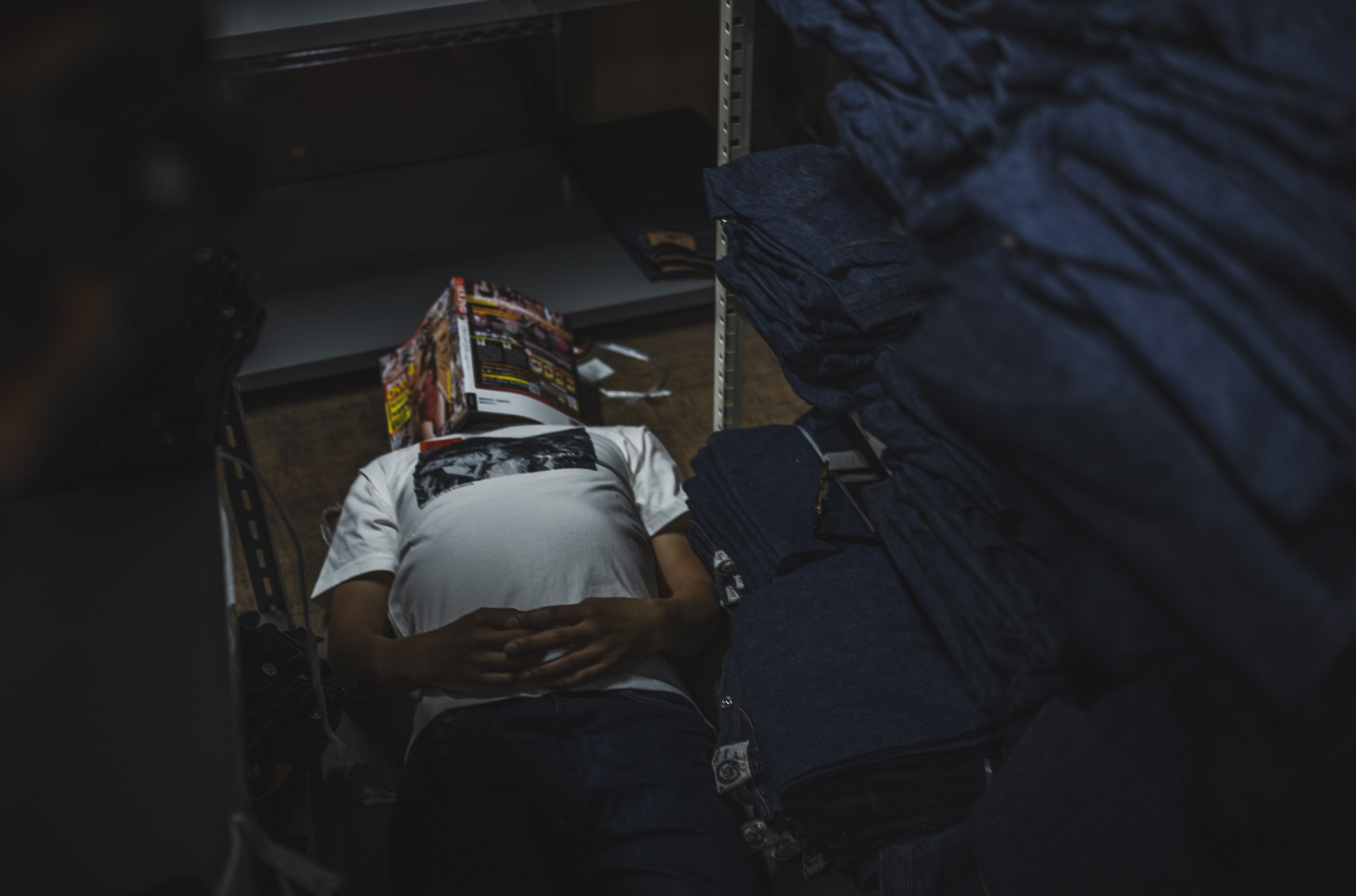 2013年 写真の3Fの使い終わった生地置き場だった場所は現在TCBの出荷前の製品を置く場所になっています。現在も変わらずエロ本をアイマスクに夢追い人が休む場所になっています。
