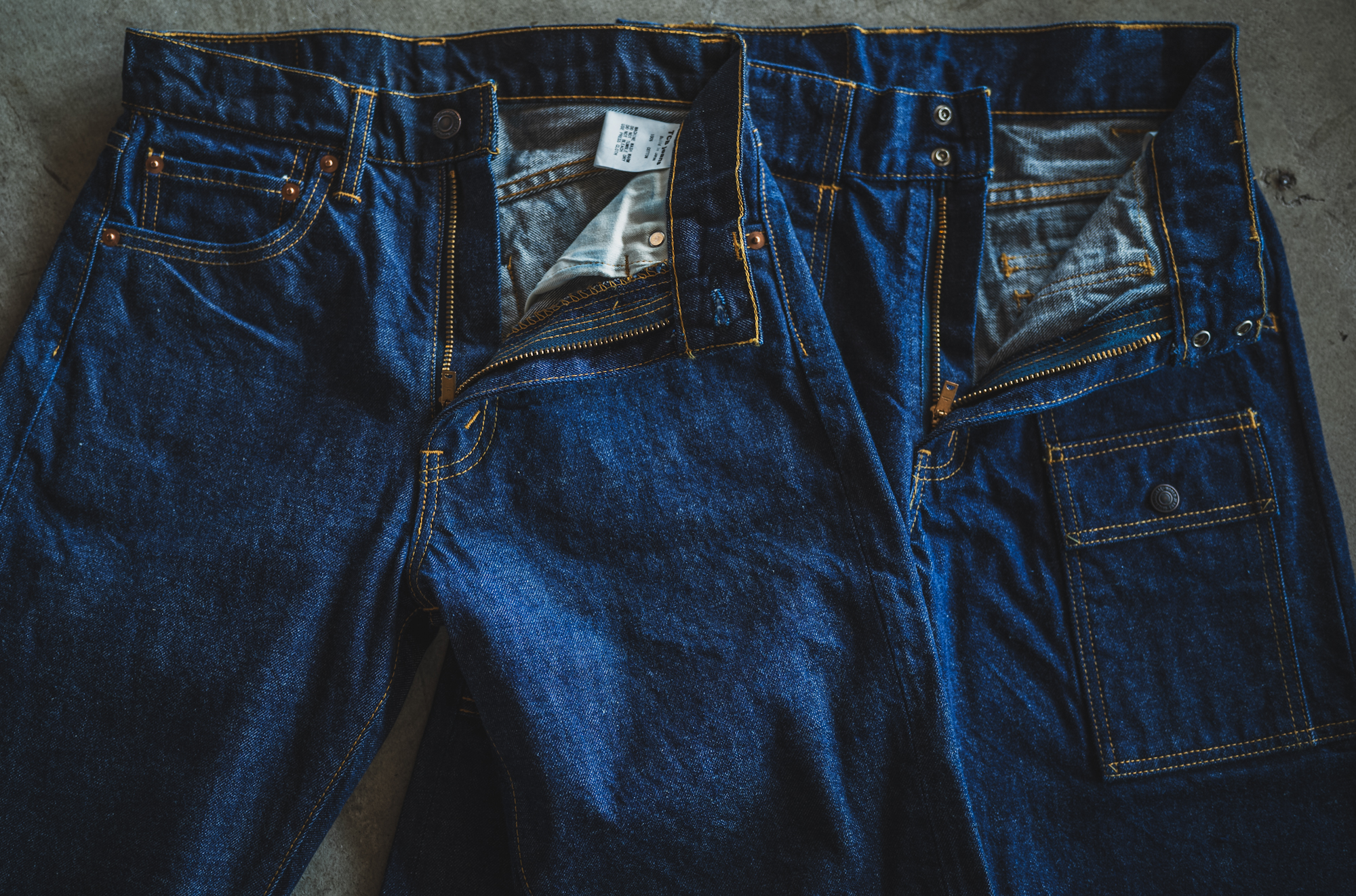 TCBのラインナップは生デニムが多いので前開きがボタンフライが多いのですが久しぶりにジップフライのジーンズ