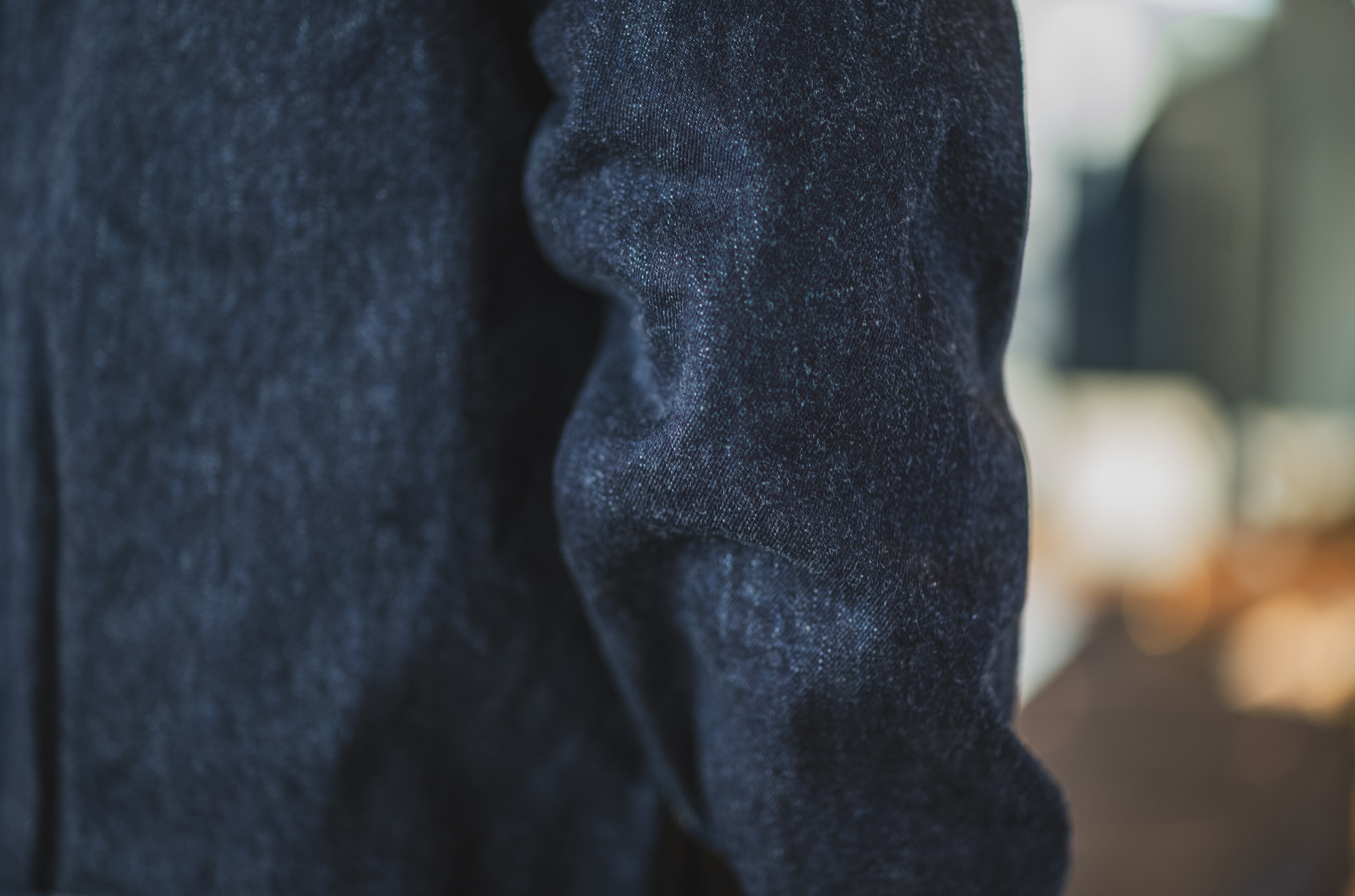 Vintageを参考に再現した胸ポケットの上にプリーツ留めのステッチが乗ってしまってて、一枚袖仕様の少しだけイレギュラーモデルとなります。