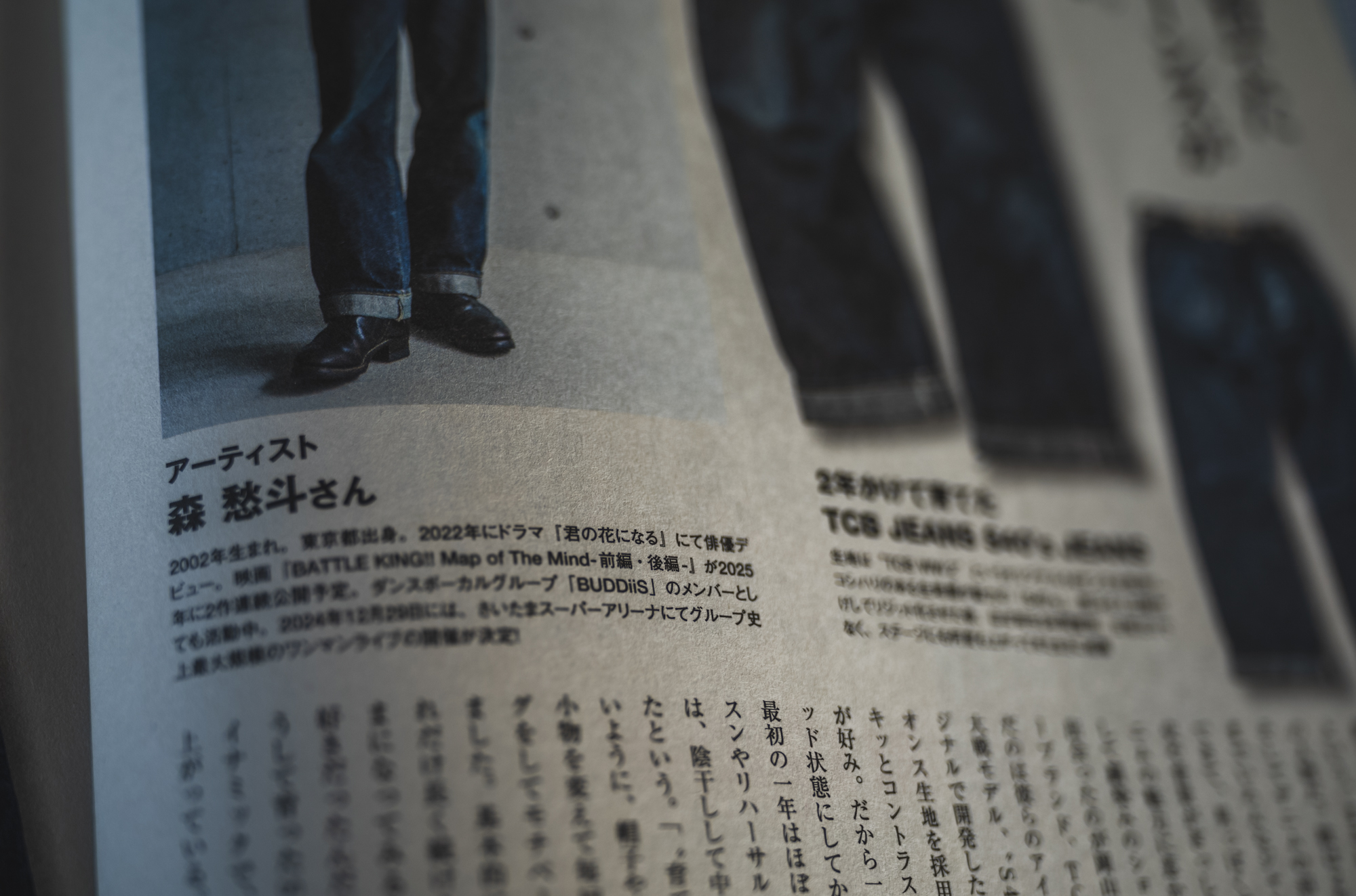 10月末発売のHail Mary Magazineにて森愁斗君が私物のTCB S40’sを紹介してくれています。 愁斗君世代が私たちの様なジーンズを育ててくれて、これからも日本でジーンズを作るという産業が続く様になってくれたら良いなと思います。