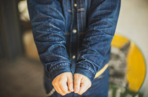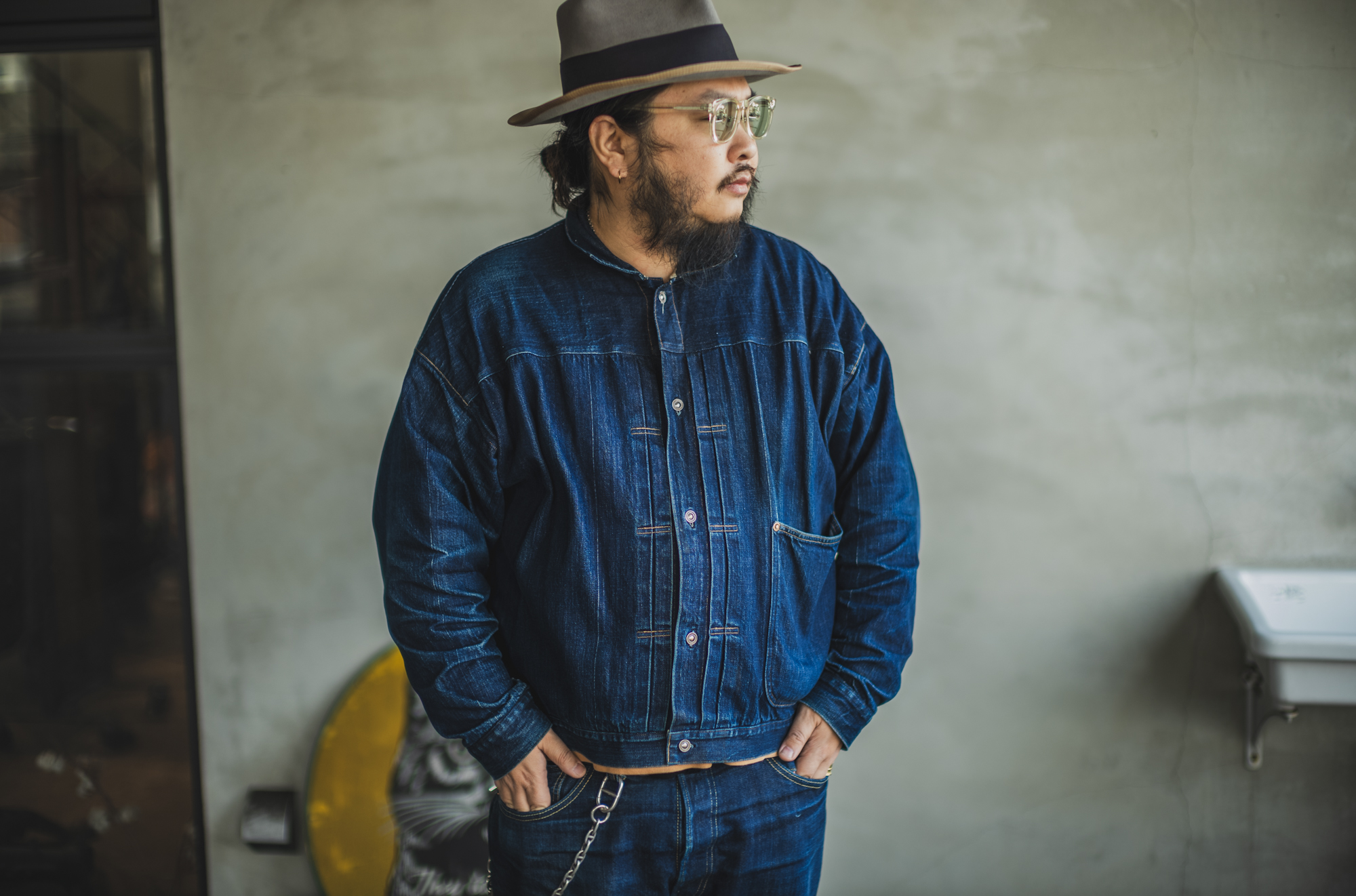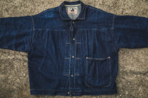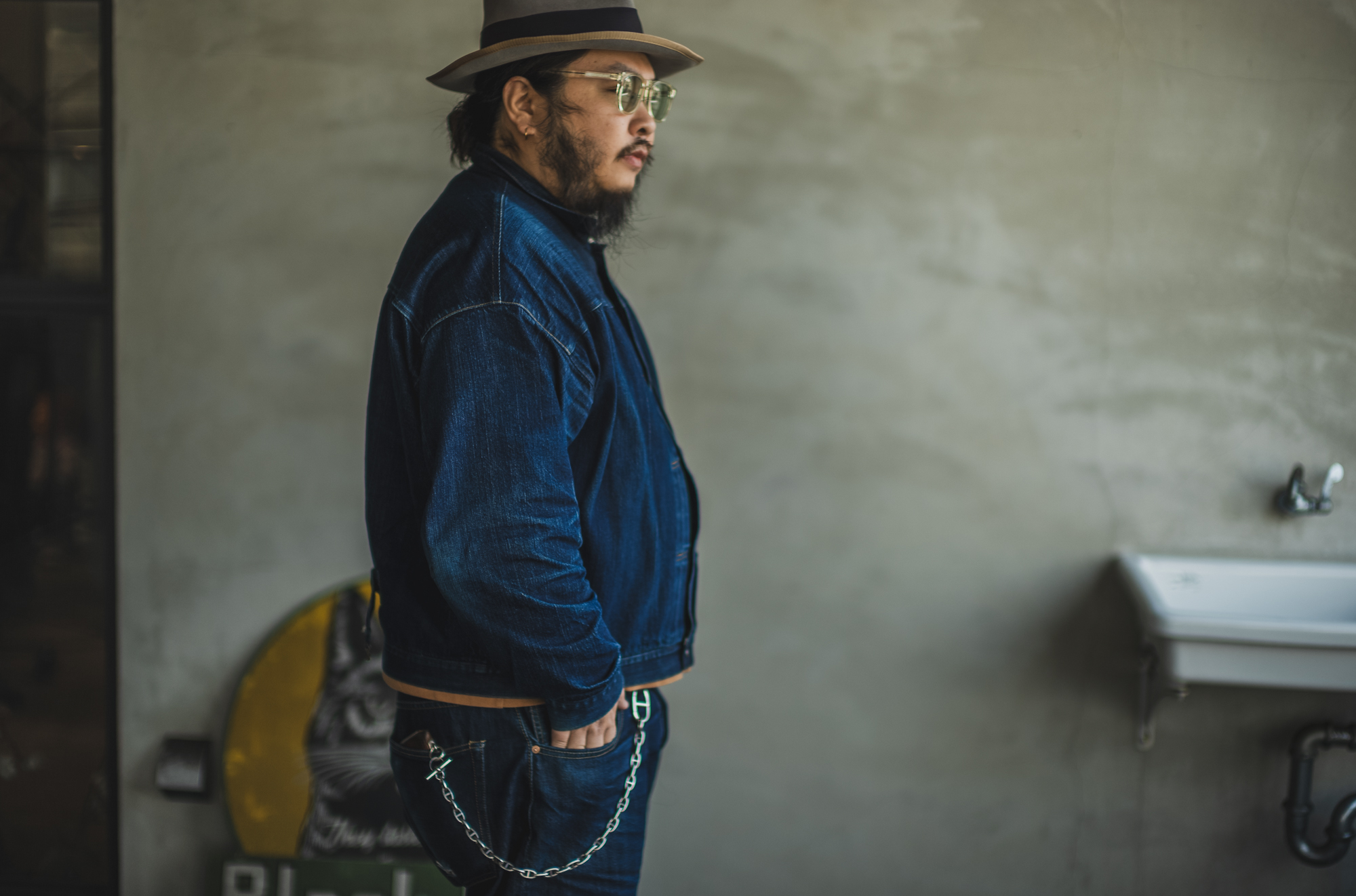 I thought it would fade more slowly because it’s dyed by natural indigo, but because it has four different yarns in thickness combined, it should have a lot of unevenness on the surface of the denim, and the convex parts are more likely to get faded because they get more friction while wearing, so I personally feel that the fading speed is as fast as the synthetic indigo dyed fabric.