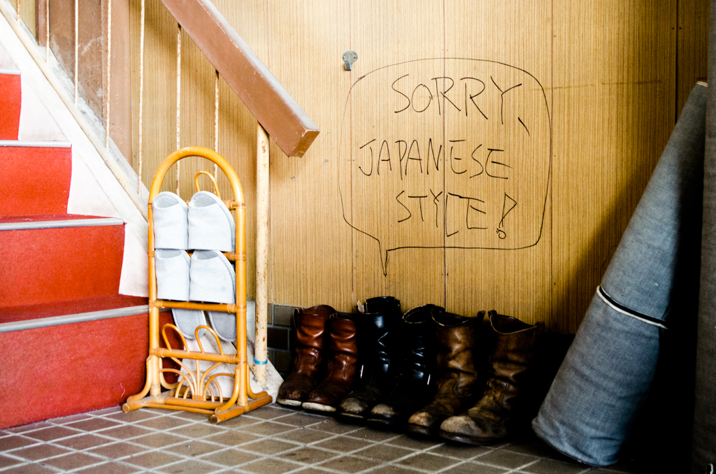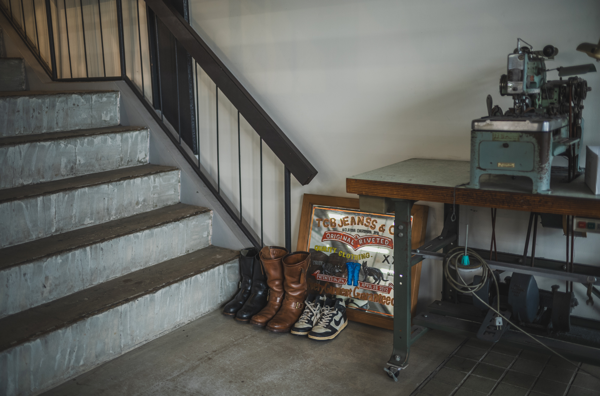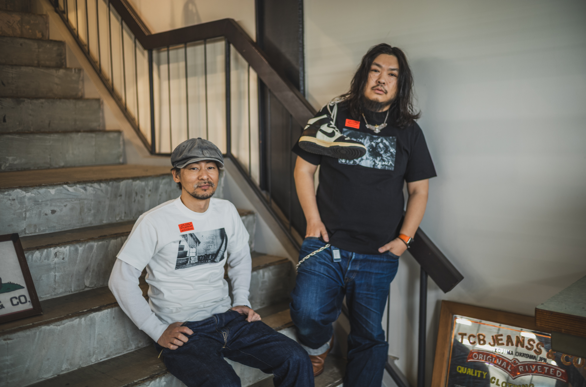 12 years ago, when we didn’t have a full shop space and shoes were not allowed inside the store, TCB gradually started to attract more customers from overseas. We wrote “Sorry Japanese Style” in marker on the wall at the entrance of the store. We took a commemorative photo on February 16, 2013. We never thought we would make a T-shirt with the photo of that time, but since then we have renovated the factory and created a shop space, and compared to back then, we have more people from all over the world coming to our store.