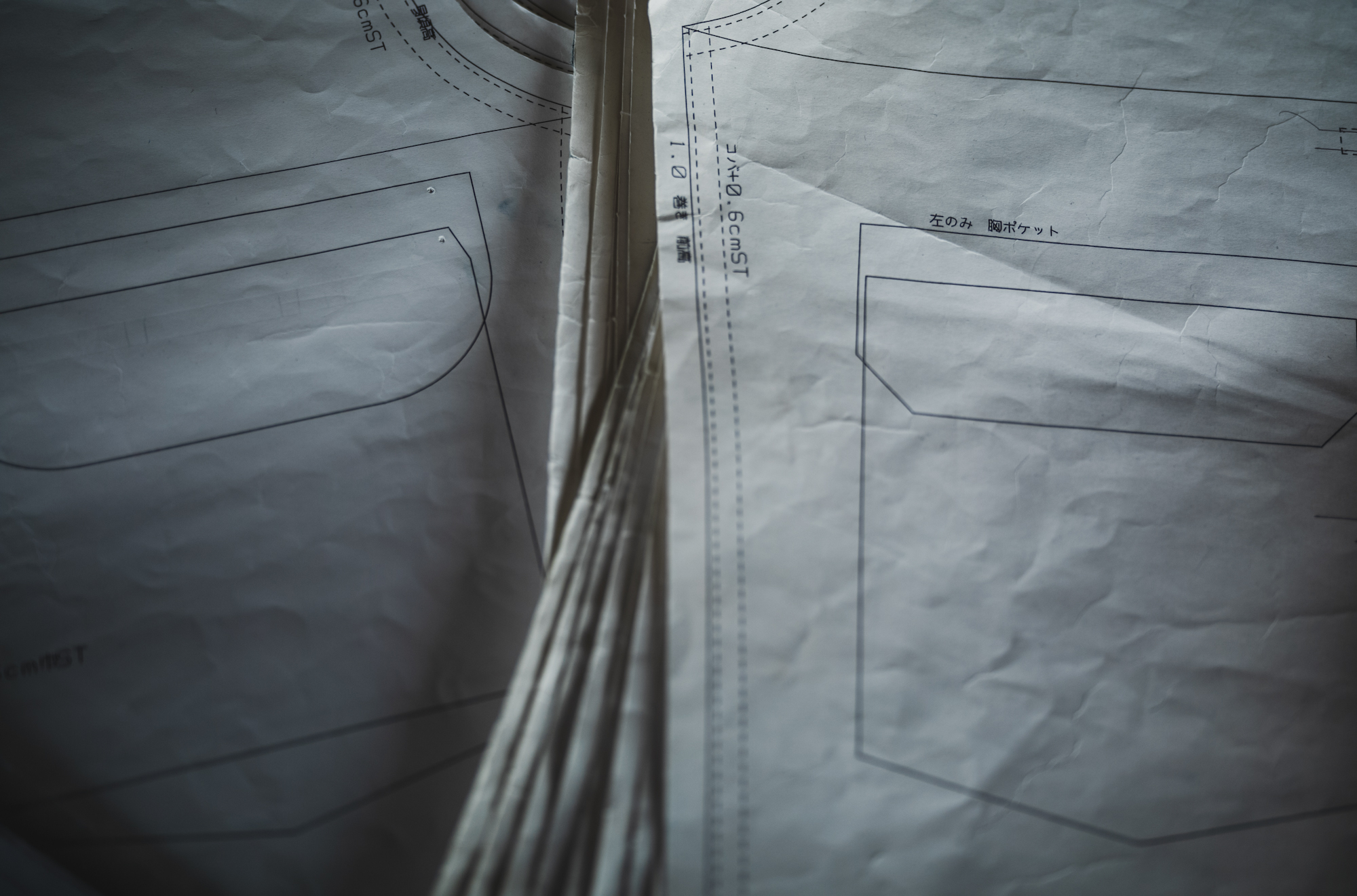 紙の型紙を確認すると分かりやすいんですが、30’sJKのパターンは両方角度が付いてるのに対して20’sJKに関しては長方形。