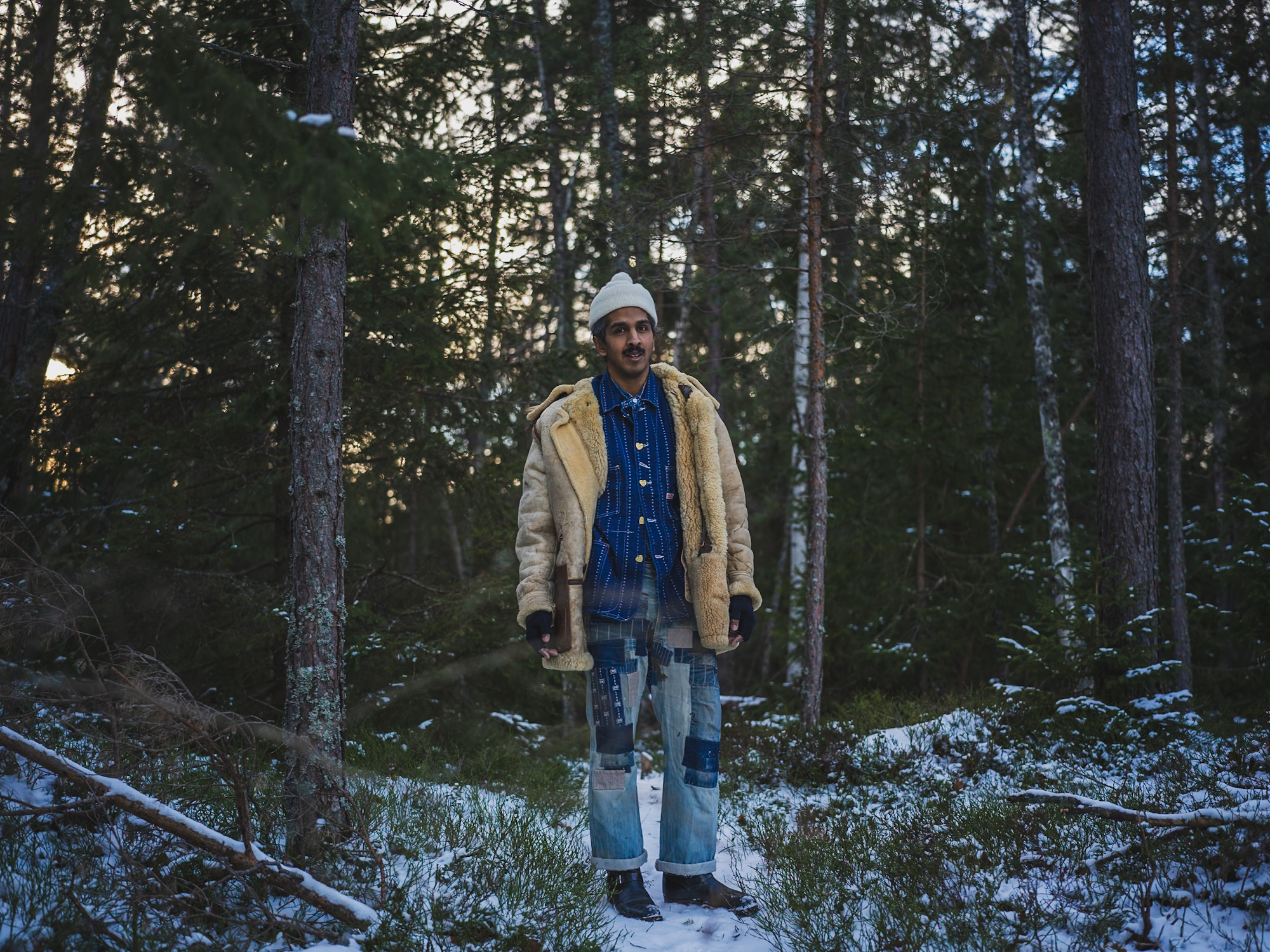 We shot them this past February in the snowy landscape just behind Viktor’s home in Sweden. Wanting to do justice to the Swedish scenery, I left the usual Leica behind and brought my Hasselblad for this shoot. The snow acted as a natural reflector, the air was crisp, and his lifestyle and sense of style quietly melted into the silence of it all.