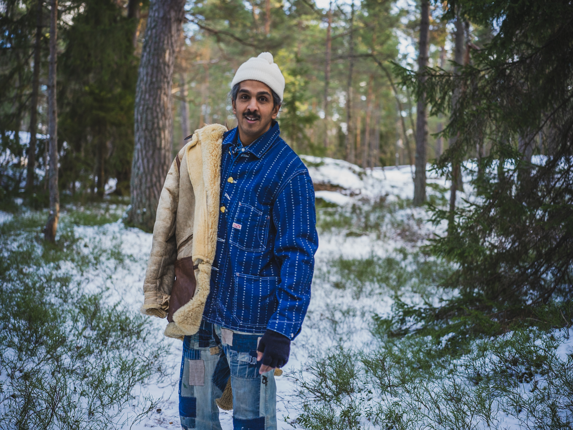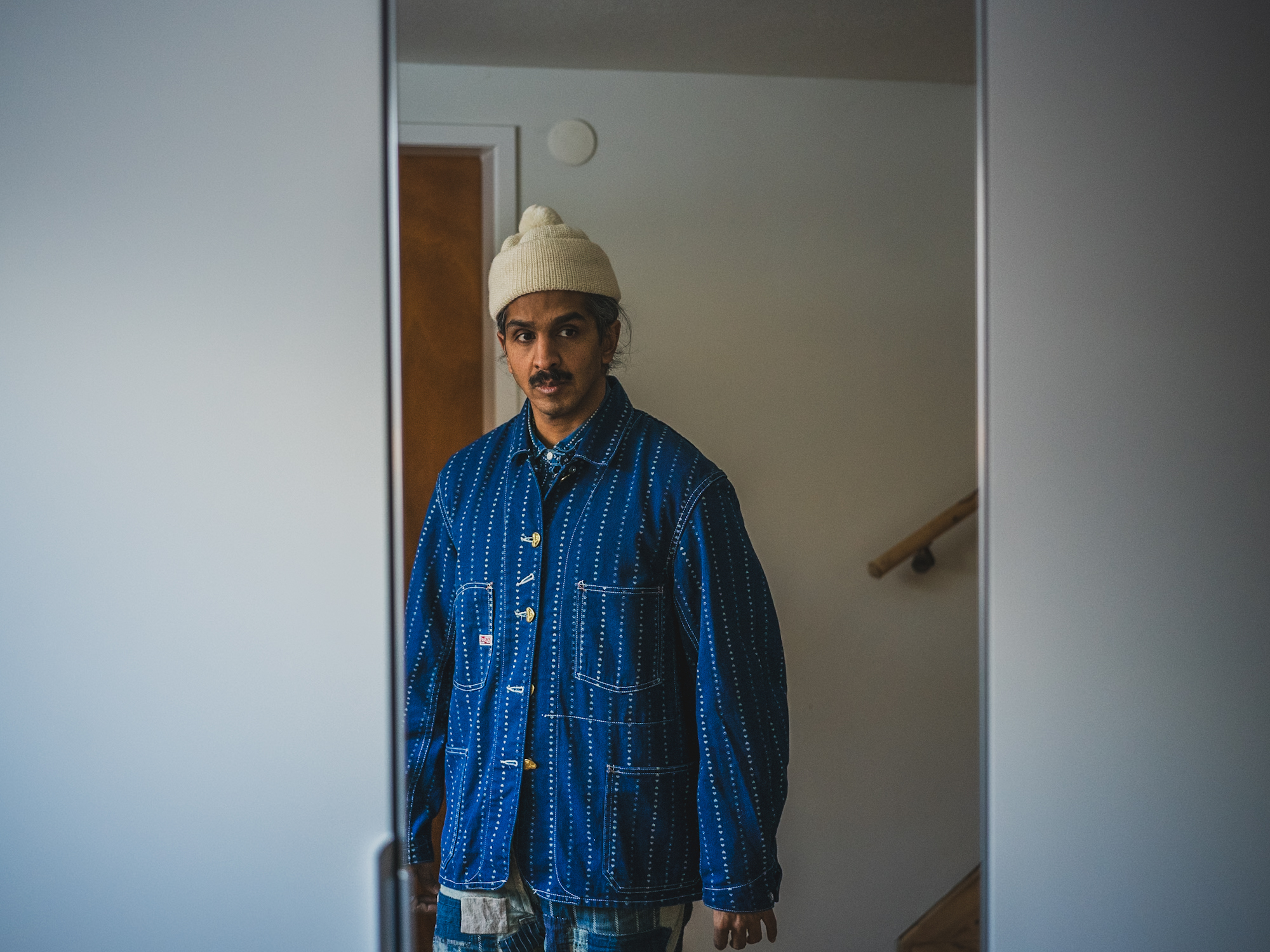 彼が羽織っているのは、CatharttのPaw Stripeの上に重ねたヴィンテージのB-7。今どきB-7をリアルに着こなす人は、彼ぐらいかもしれません。