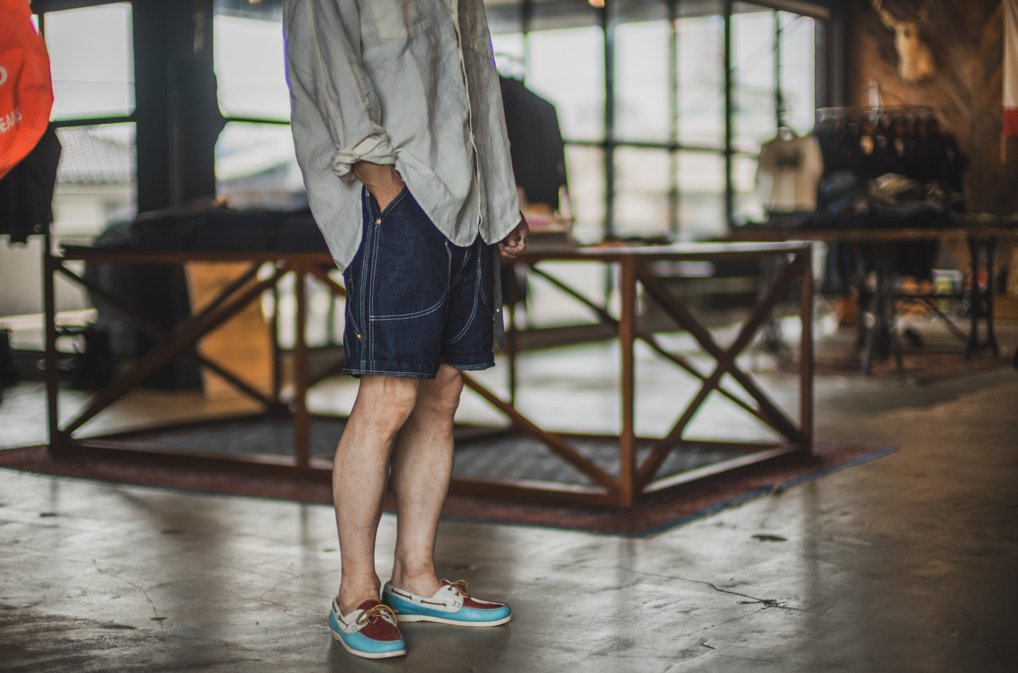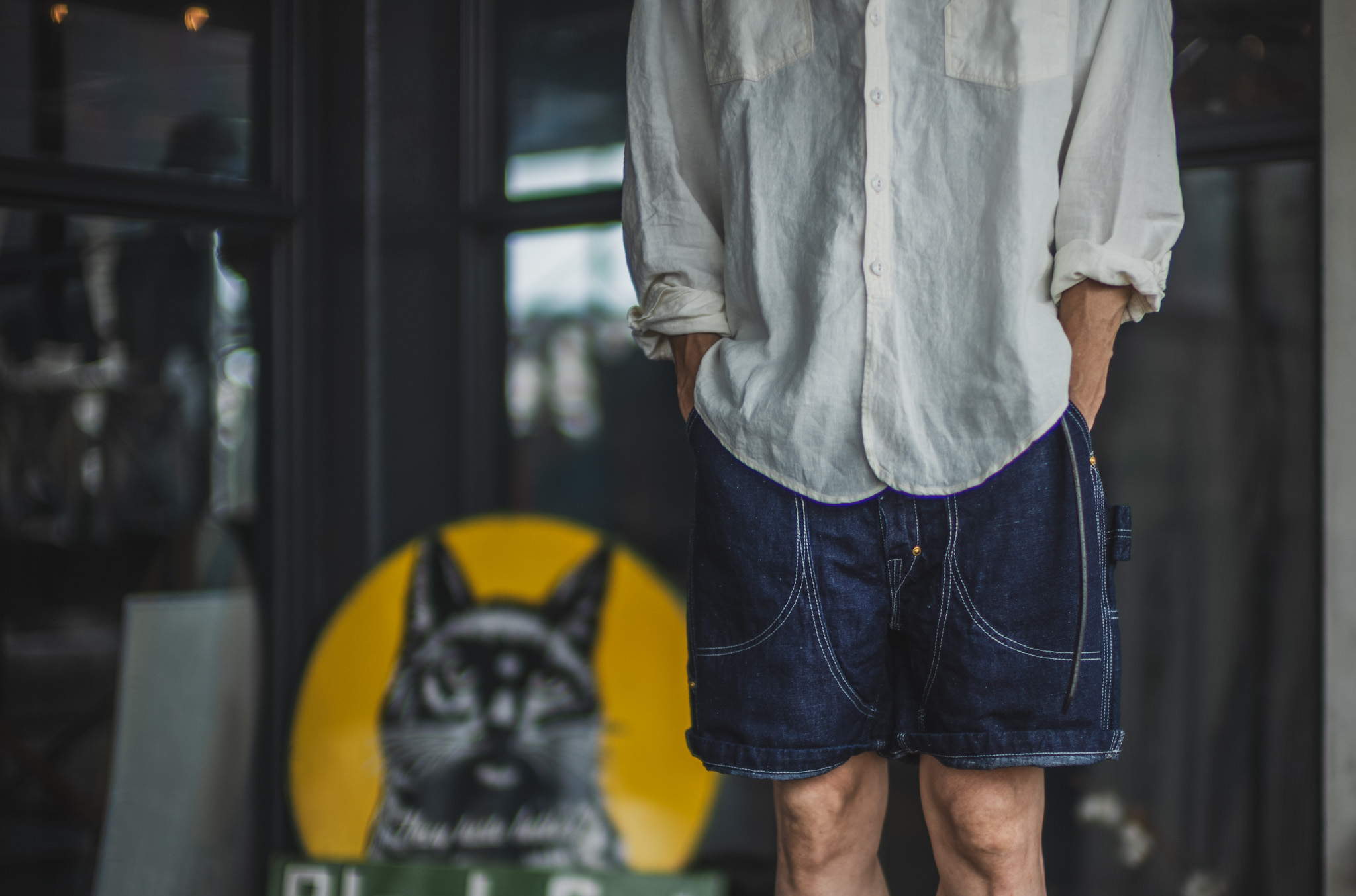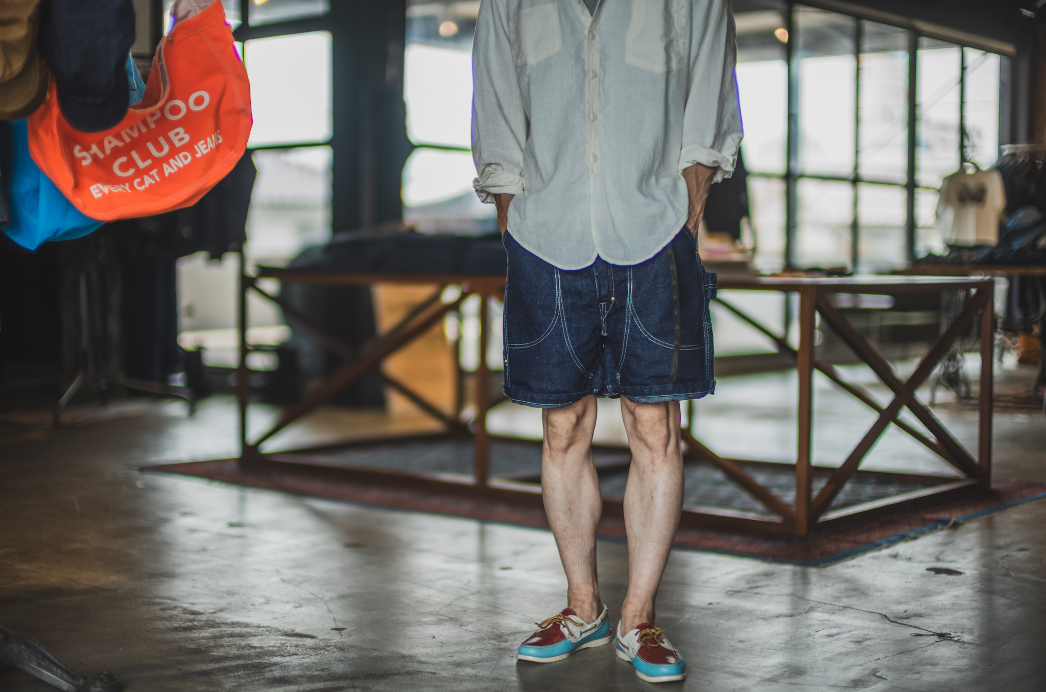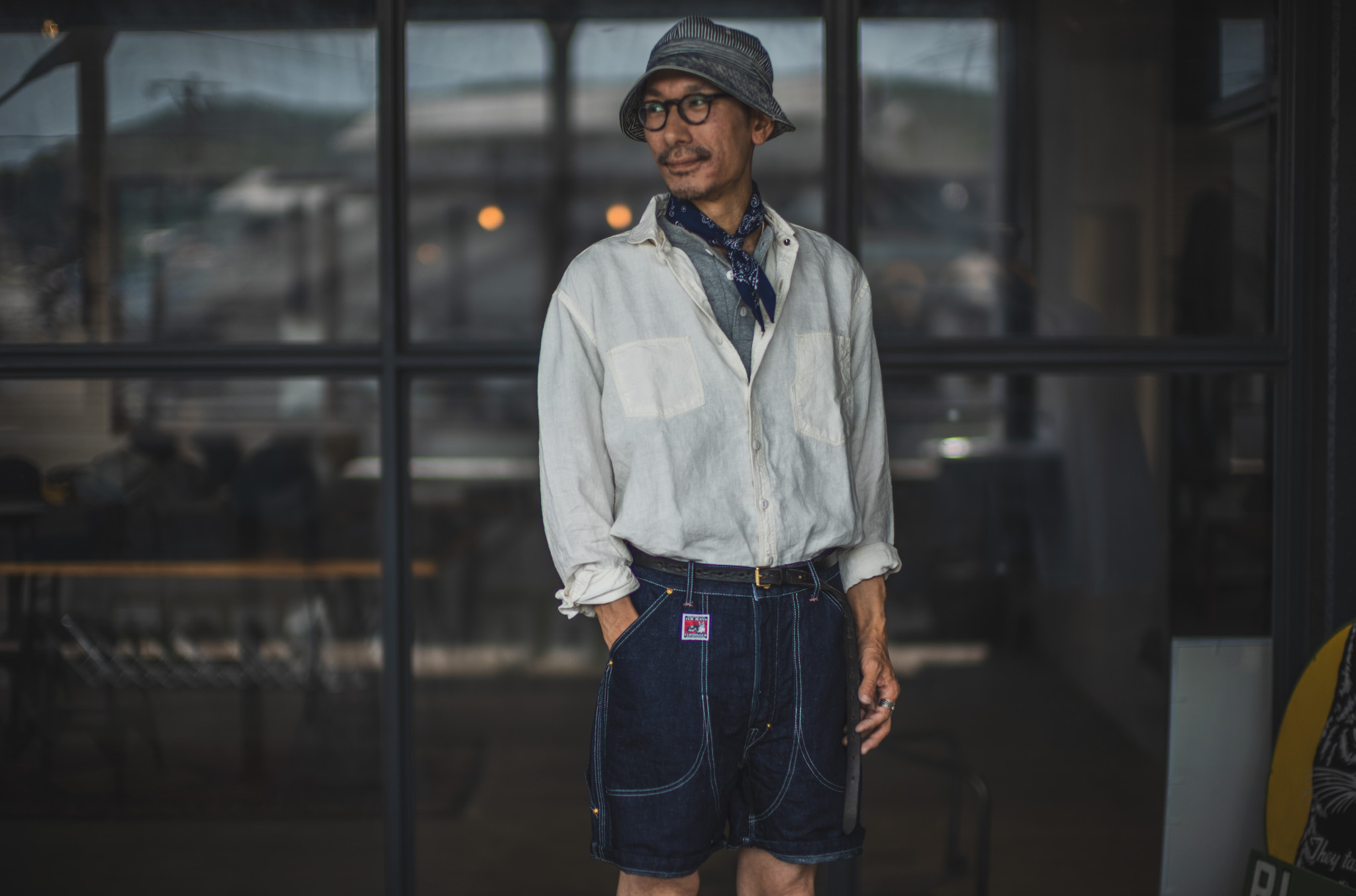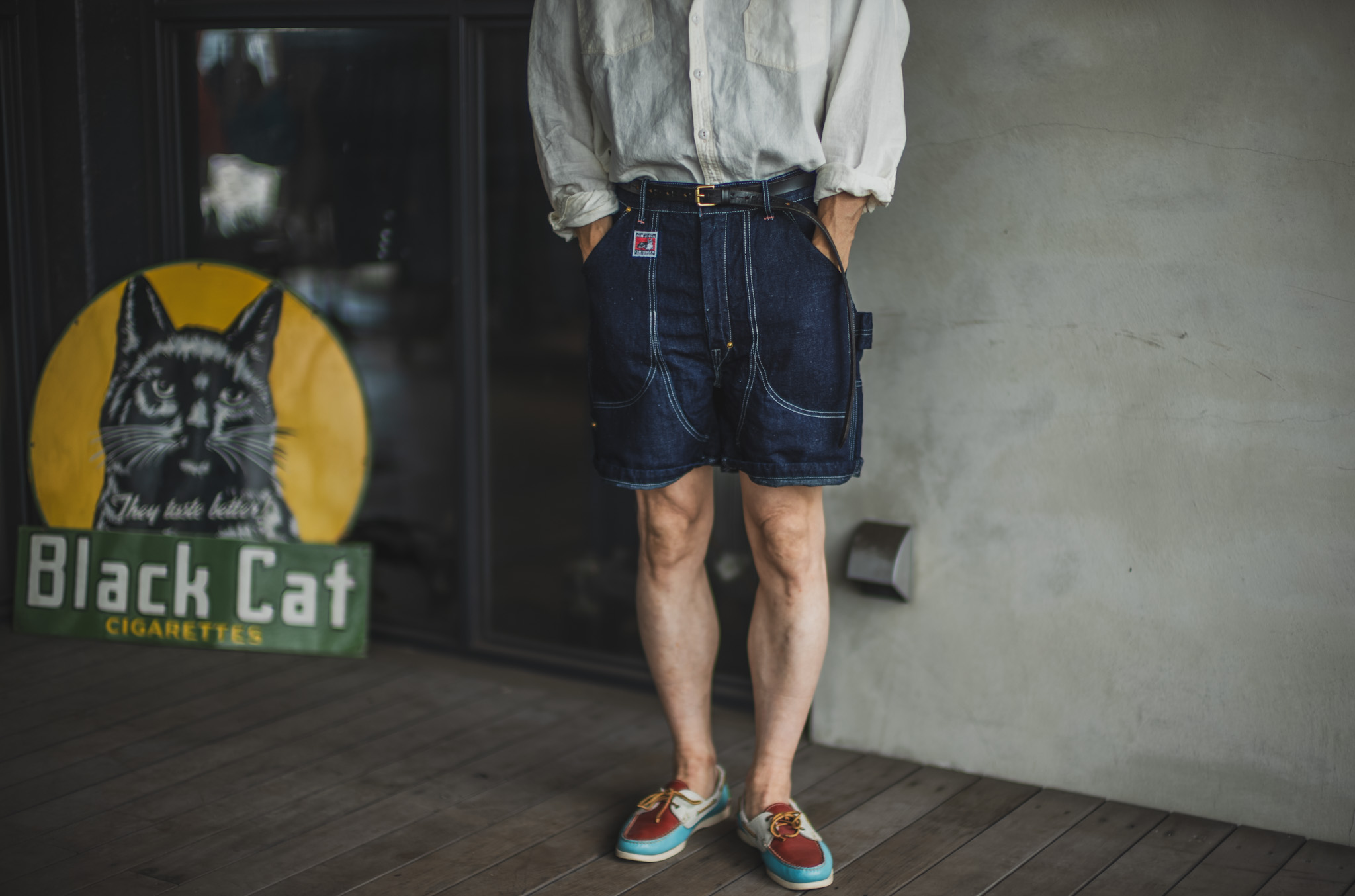 1950年代のペインターパンツを参考にショーツにアレンジして作成しています。