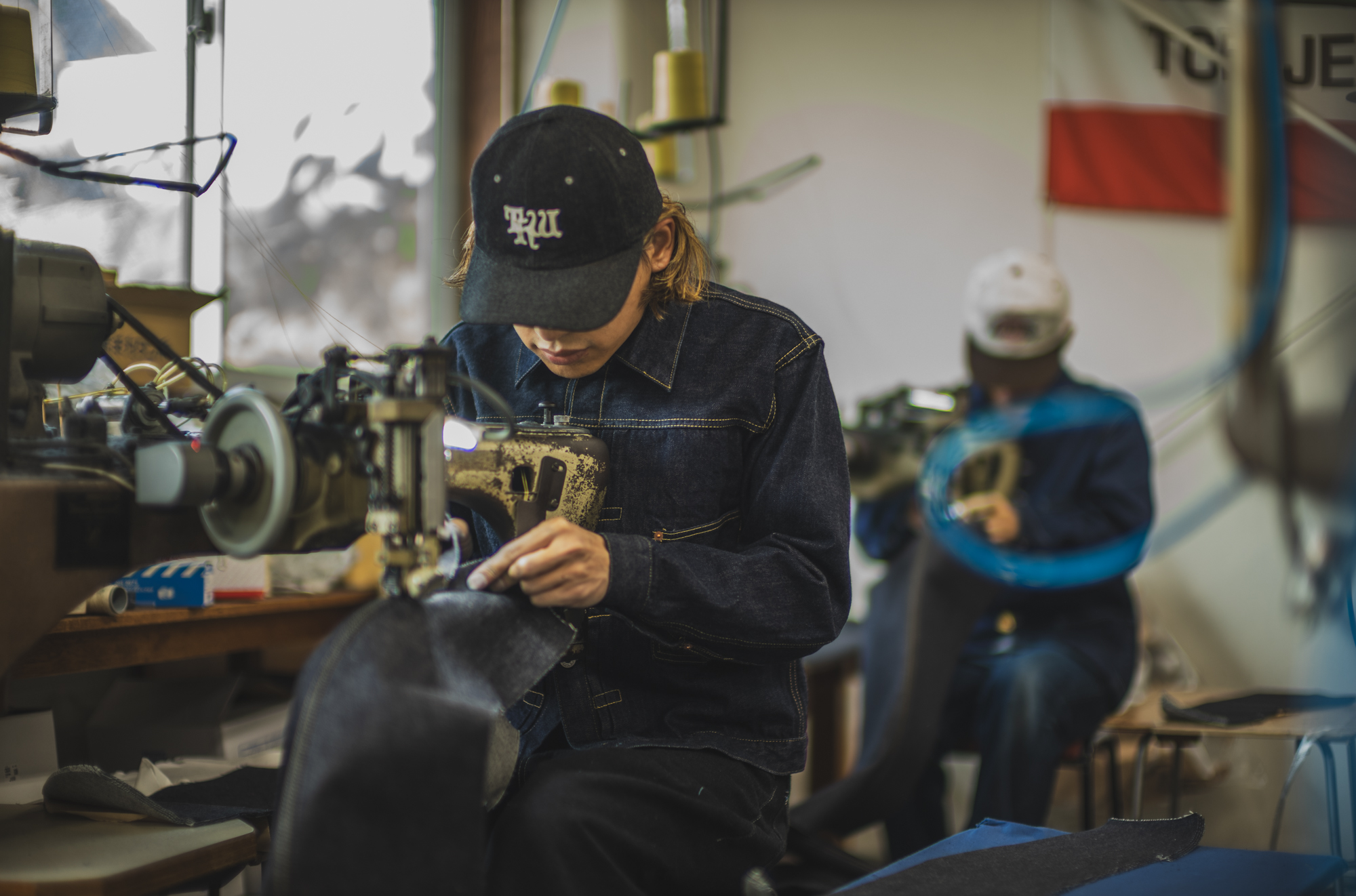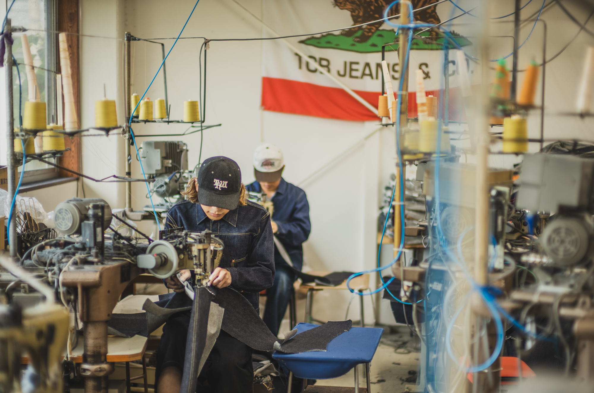 As the clock approaches closing time, hands stained deep blue begin to line up across the factory floor — a result of working with the darkest denim in TCB’s lineup.