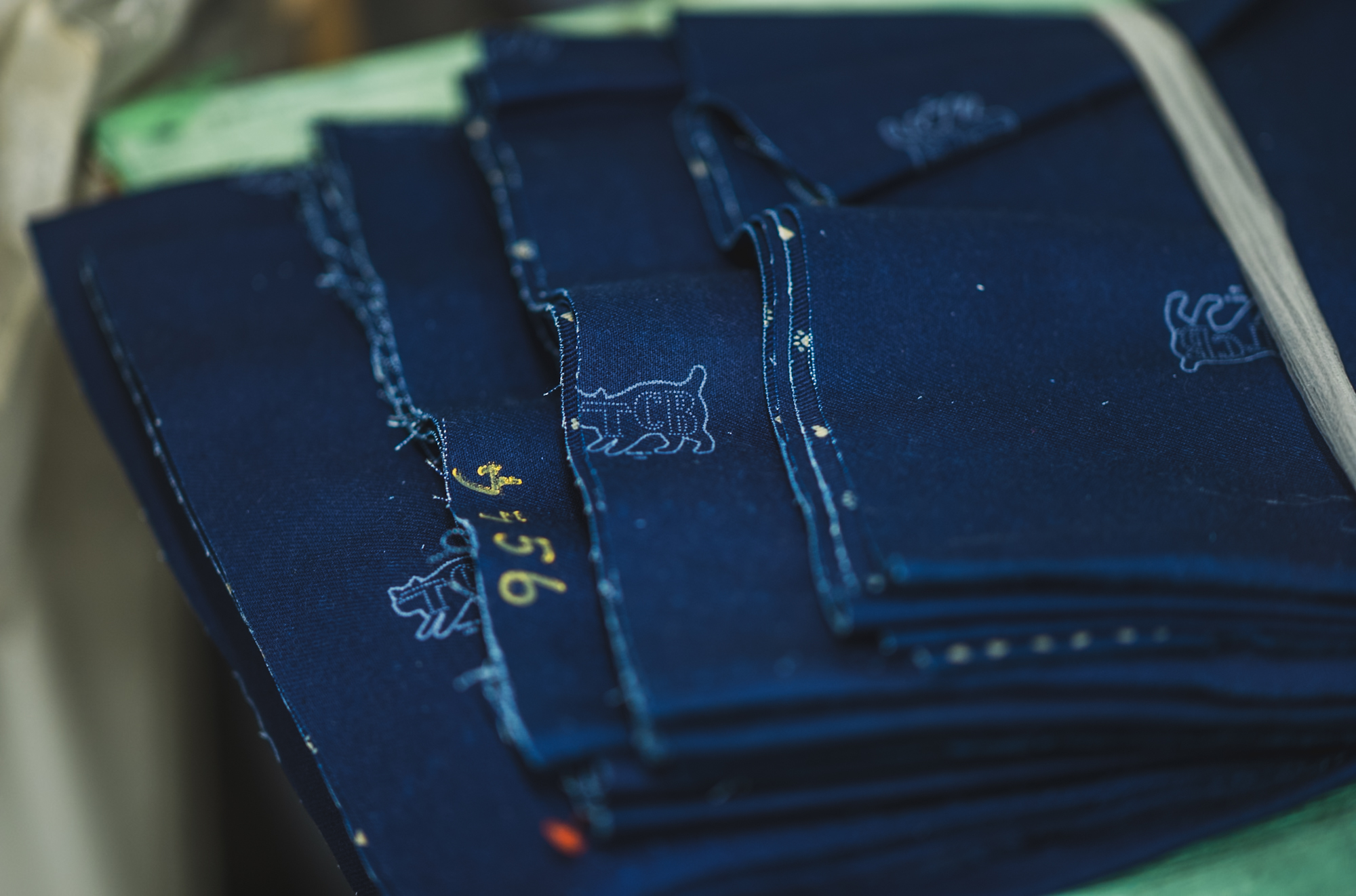 Today’s photos show scenes from the sewing process of the Cathartt Paw Stripe, currently available for pre-order.