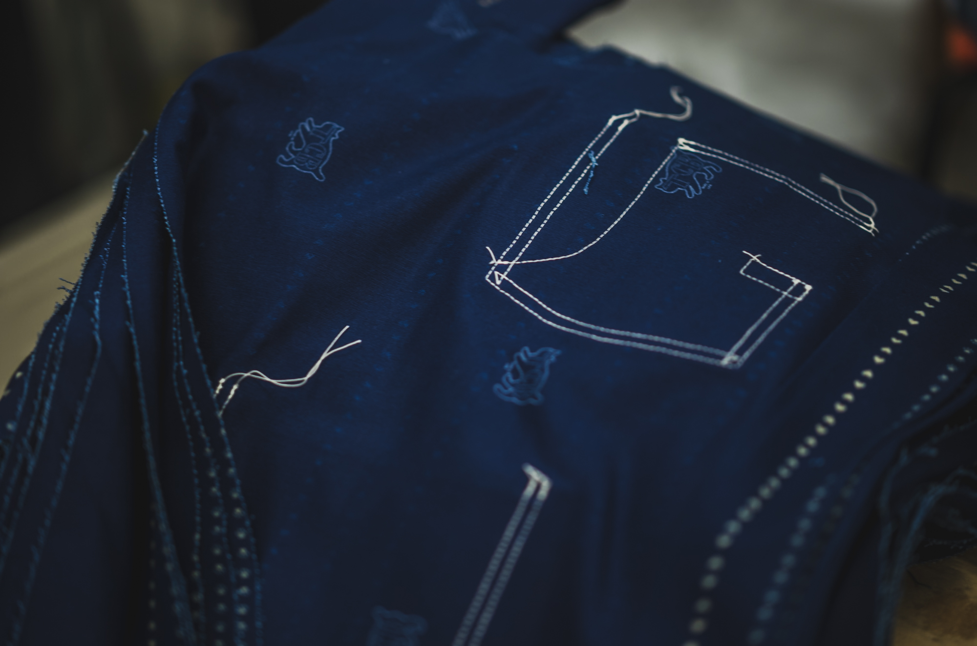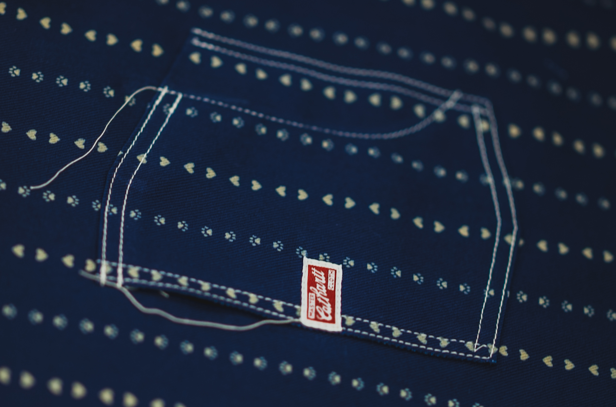 今日の写真は、現在予約受付中のCatharttのPaw Stripeの縫製風景から。