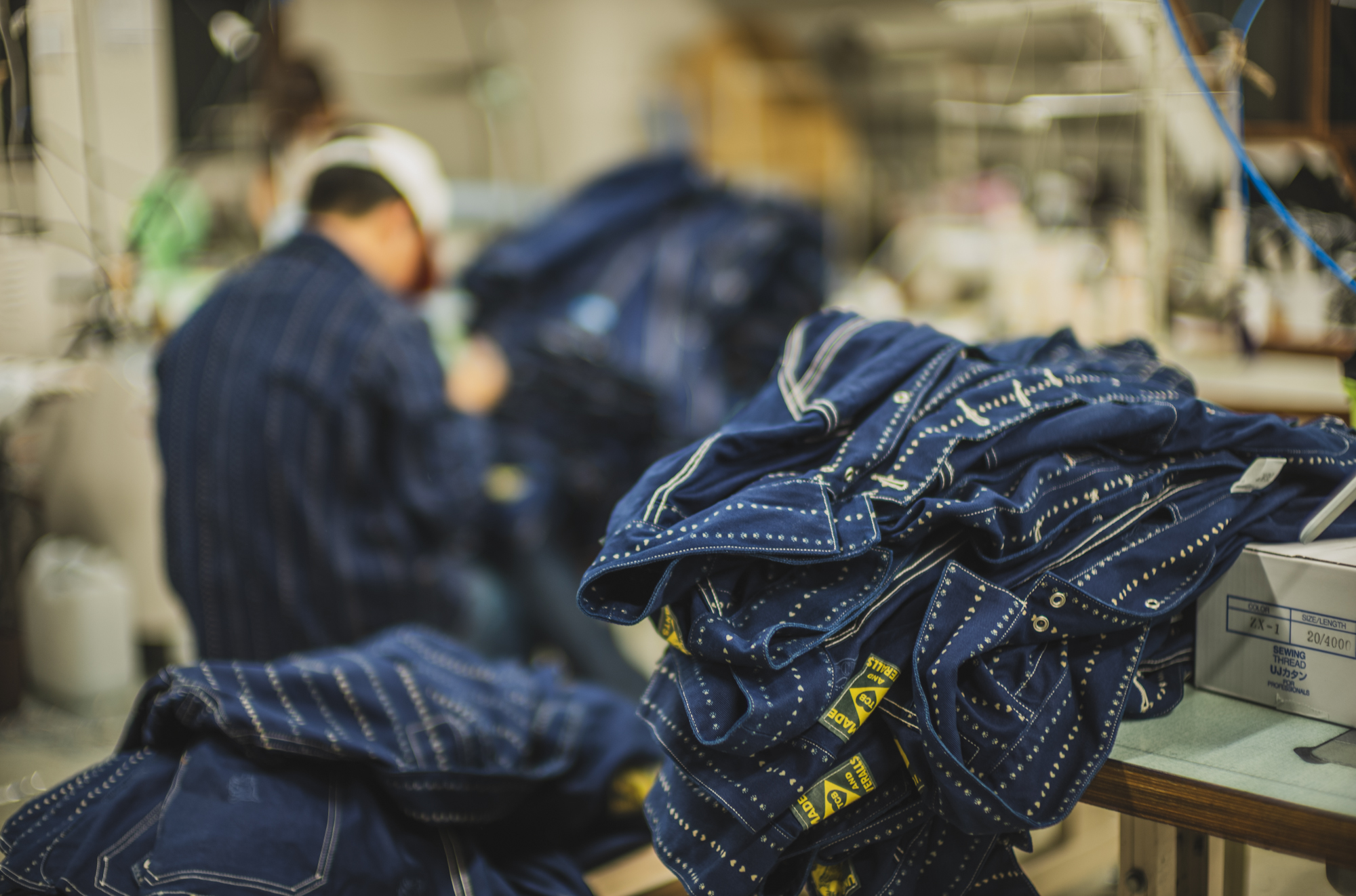 That said, on the first floor of TCB, where our sewing factory is located, we continue sewing jeans, denim jackets, and coveralls all year round, regardless of the season.