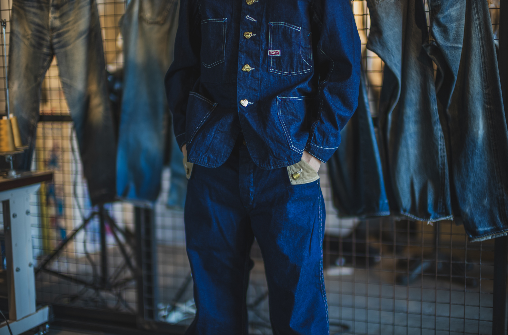 生地は、Catharttのカバーオールをお持ちの方ならご存じだと思いますが、一見すると青みが強く、表情もフラットで、XXデニムに比べると迫力に欠けるように見えます。