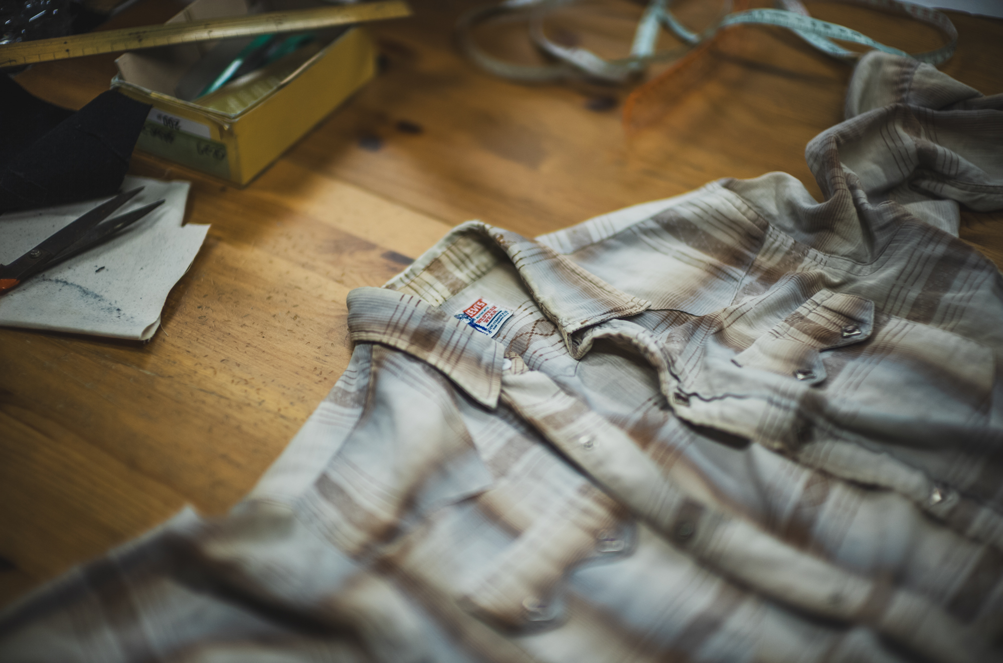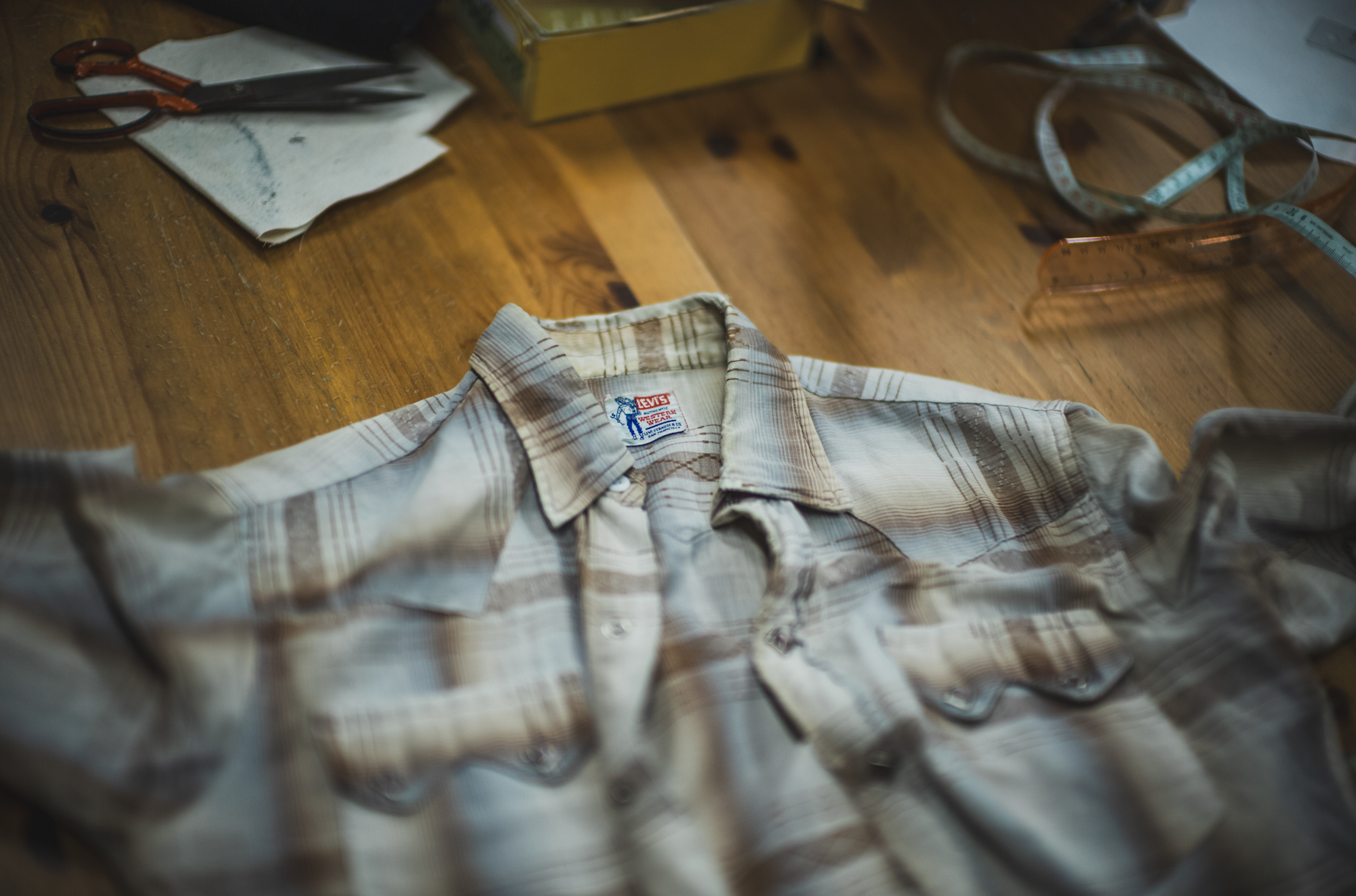 目をやると、溝口が自主練をしていて、Vintageのウエスタンシャツを元にパターンを引いているところでした。 好きなことに向ける純情な感情は、きっと空回りすることはないはず。