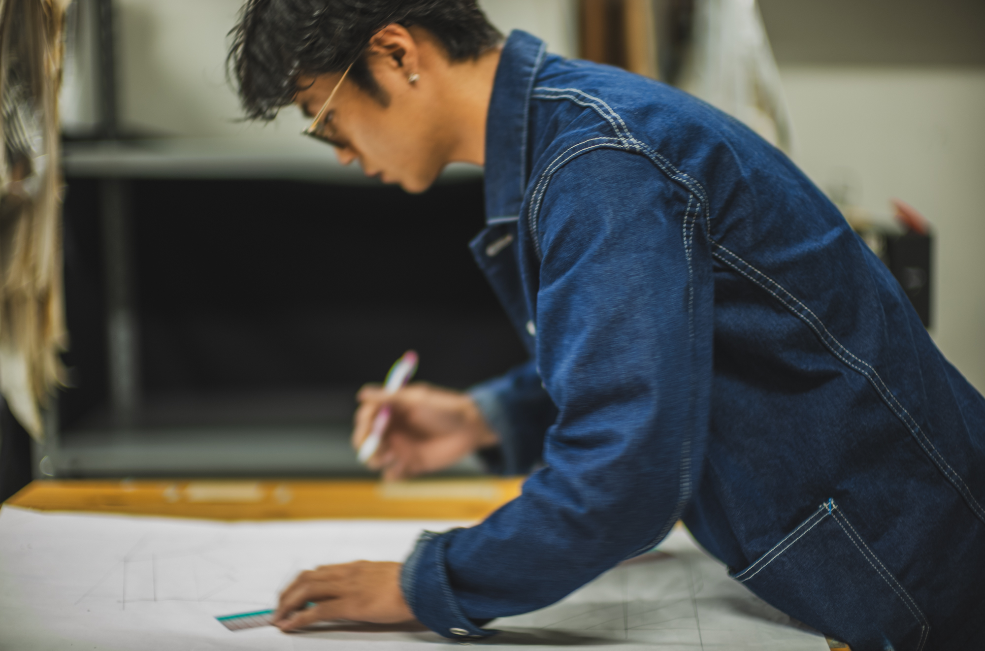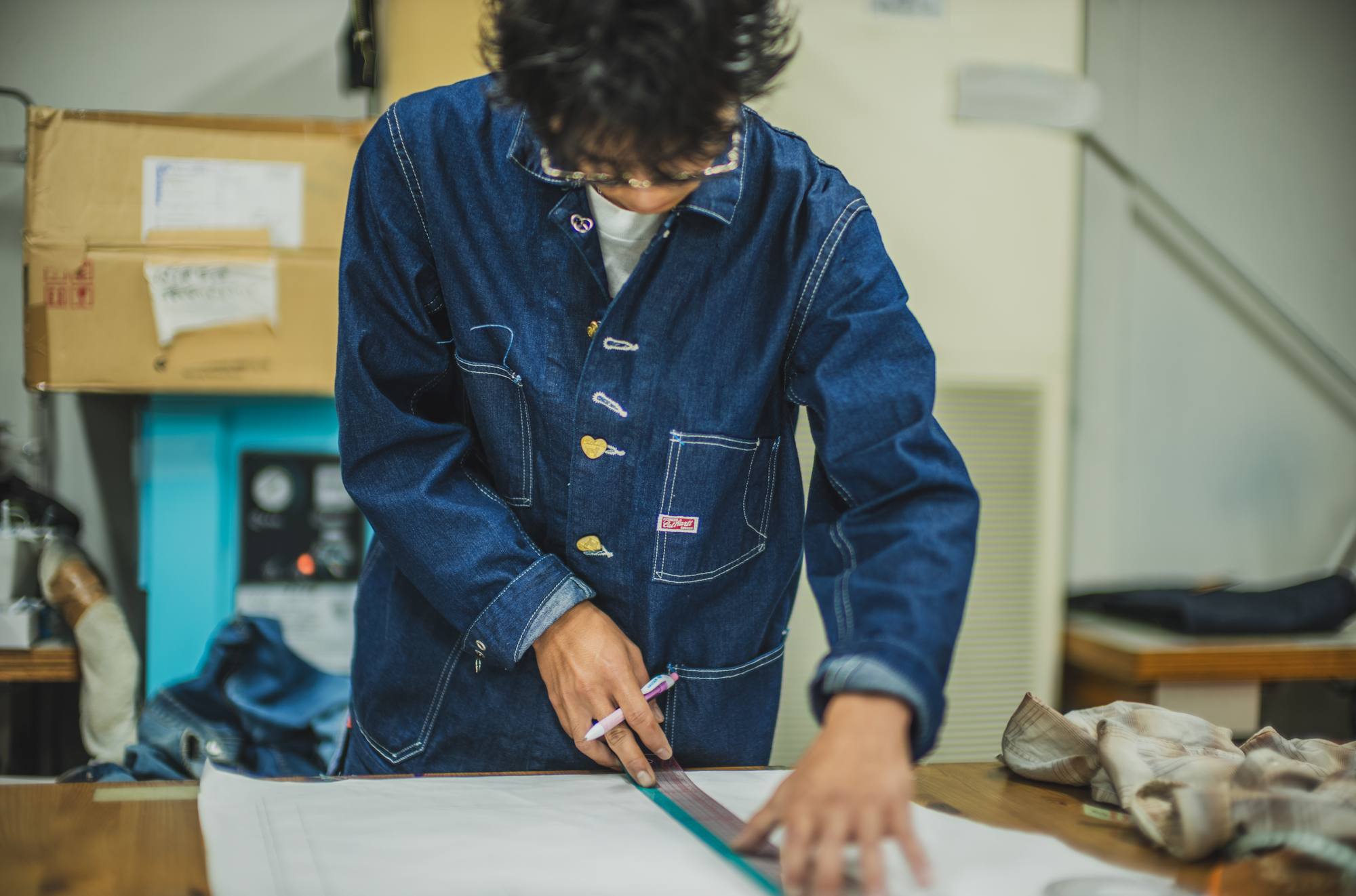 Looking over, I saw Mizoguchi practicing on his own, drafting a pattern based on a vintage western shirt.
