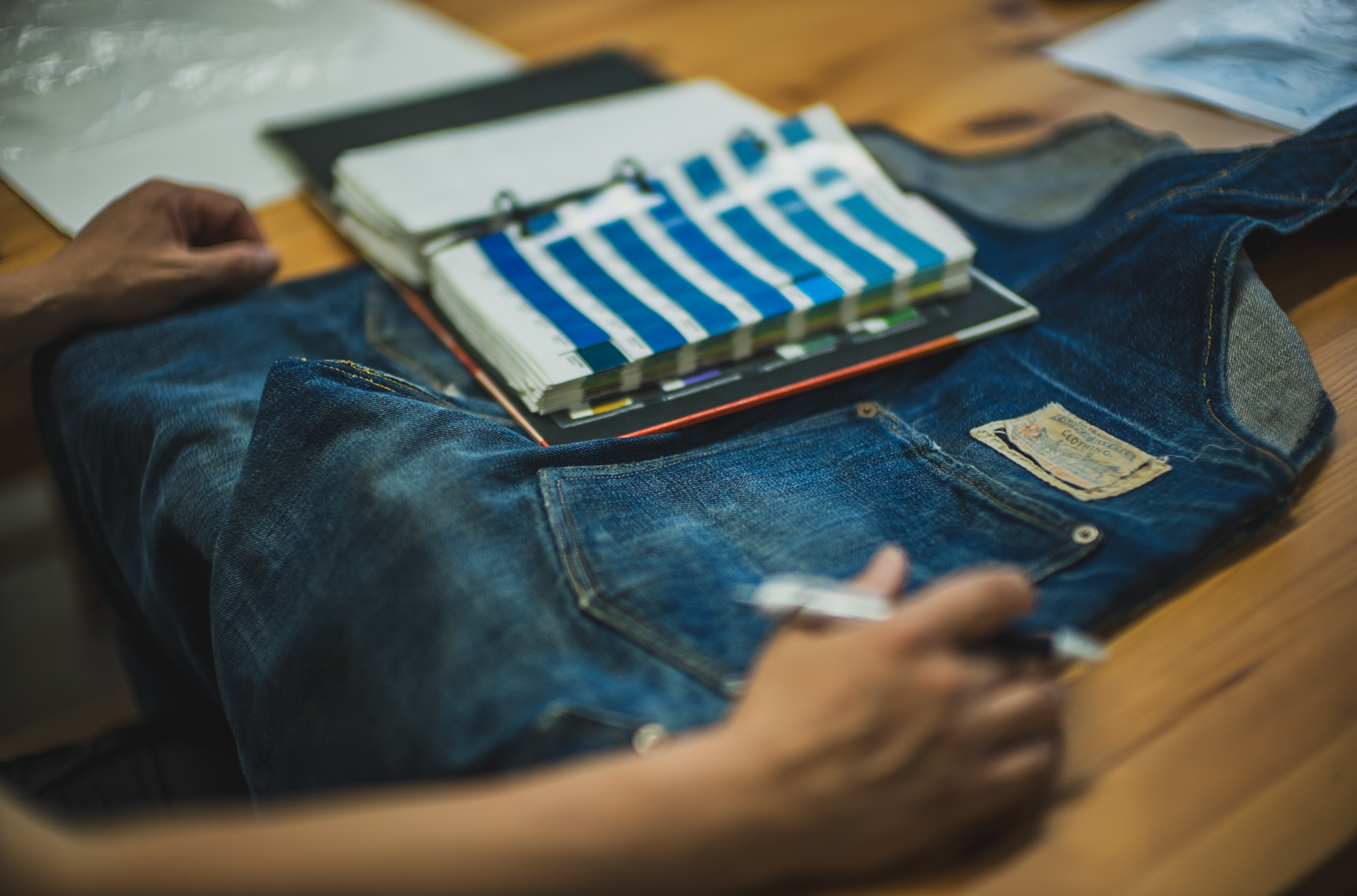 生地、縫製糸はもちろん、ラベルの色まで。