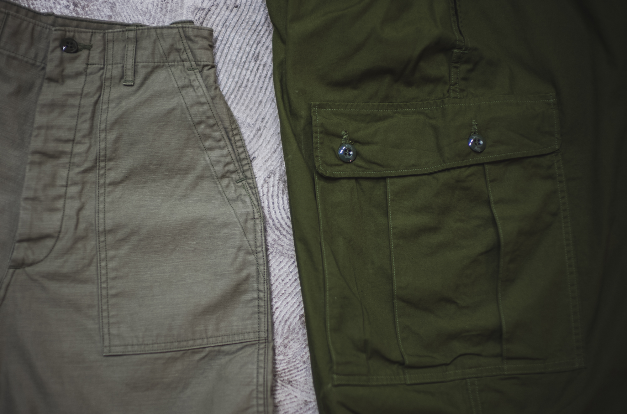 Baker Pantsといえば、Bush同様にパッチポケットが印象的ですが、これはスレキ素材よりも丈夫であること、あるいは作業着だからこその生産効率を考えた仕様なのかもしれません。