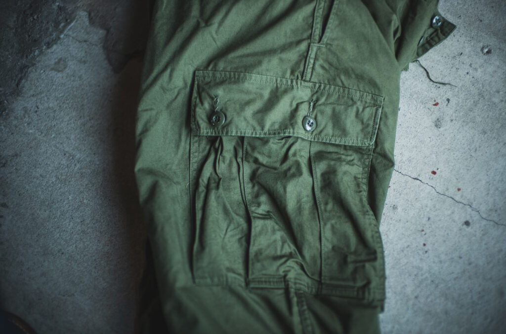 Bushといえば、その名の通り“茂み(Bush)”の中を歩く際に小枝などに引っかからないよう考えられた、フラップ付きのポケットが特徴。