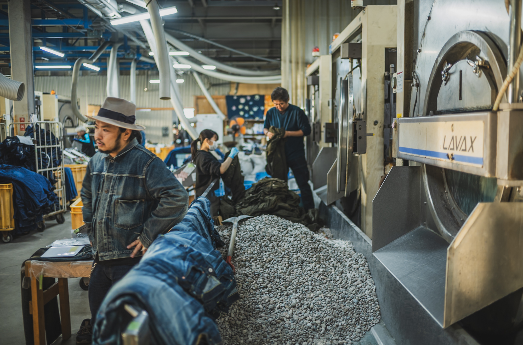 and precisely adjusted the ratio between the jeans and the pumice stones