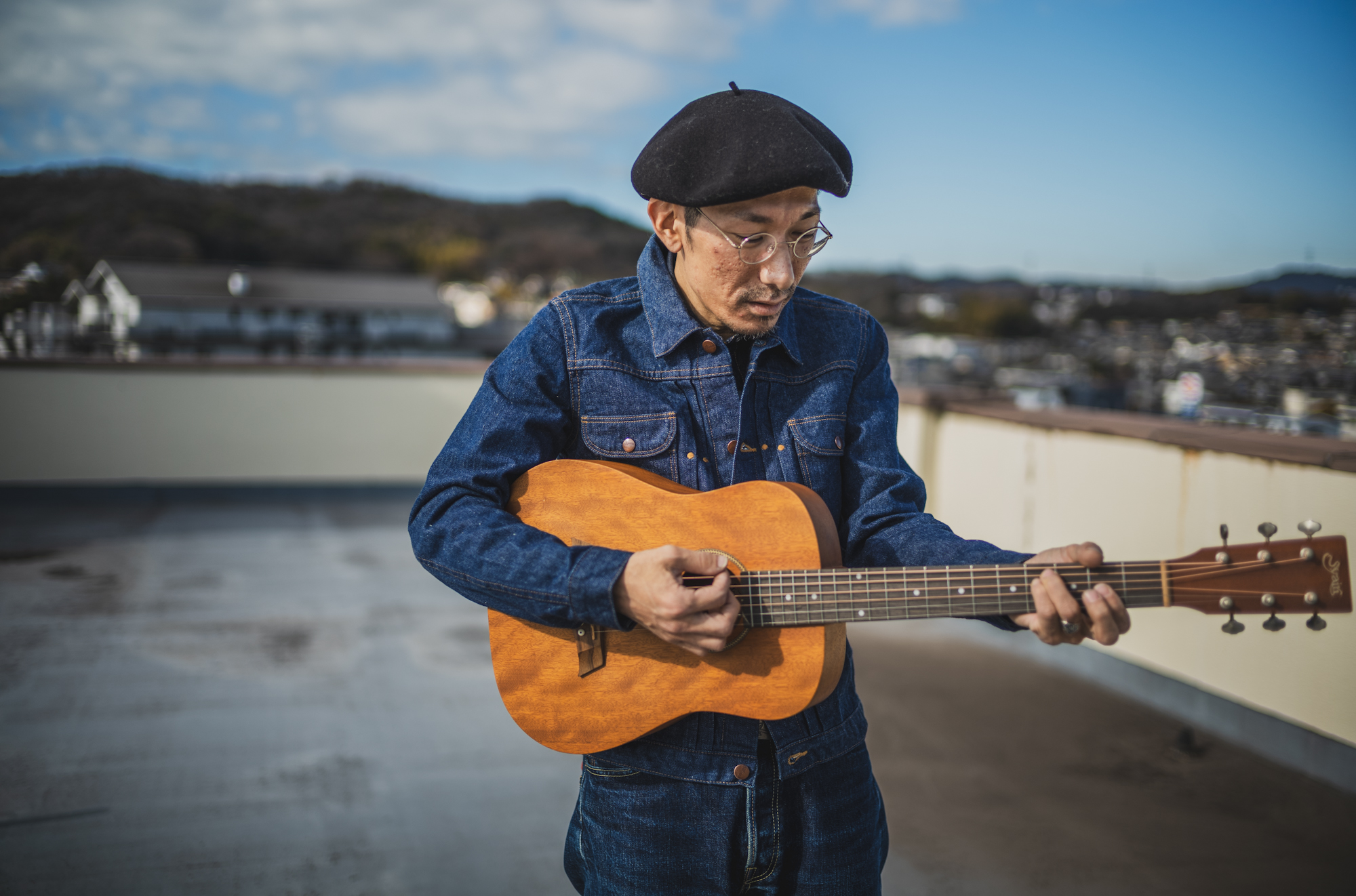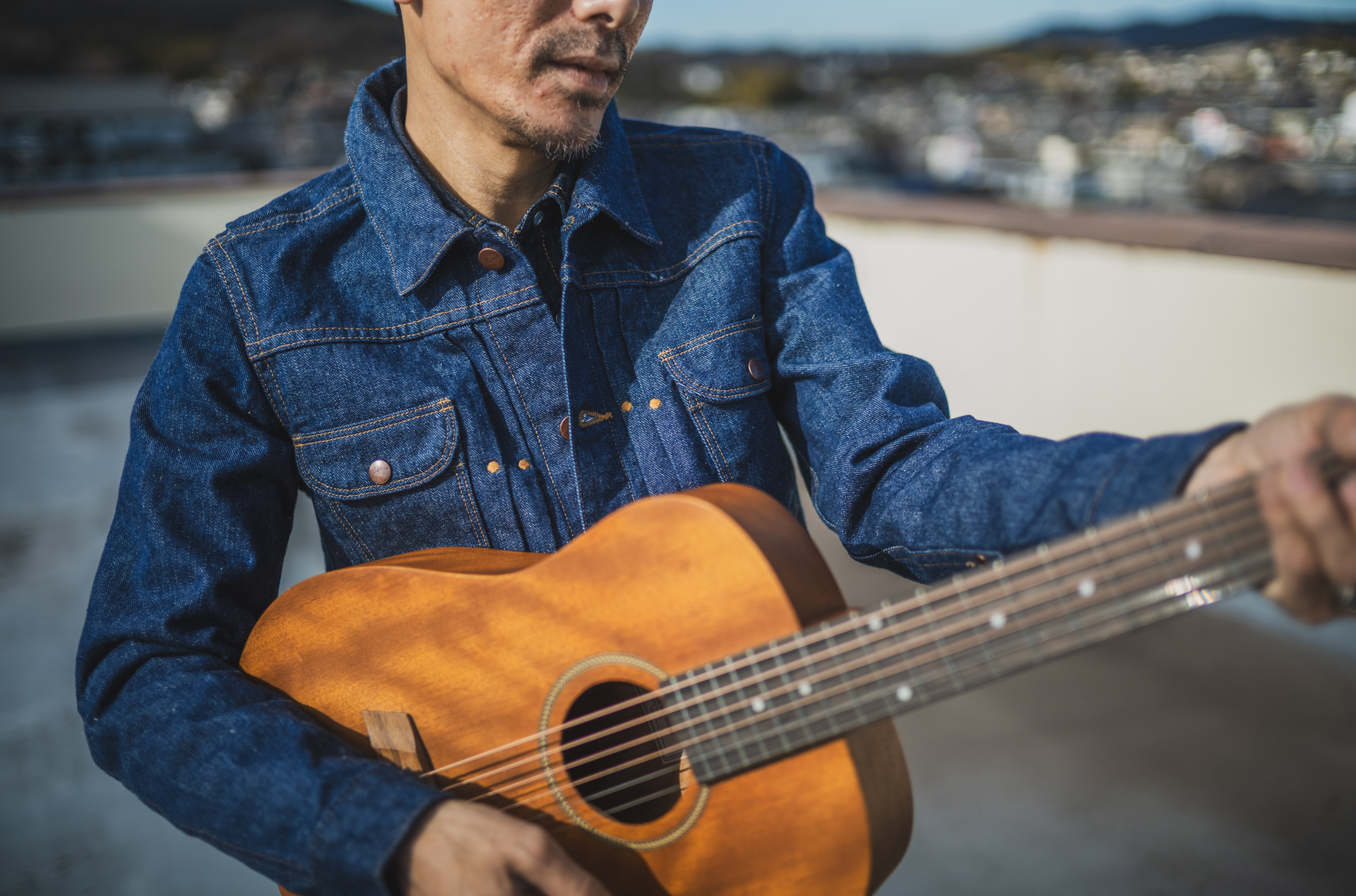 ギターを担いで、屋上にいました。