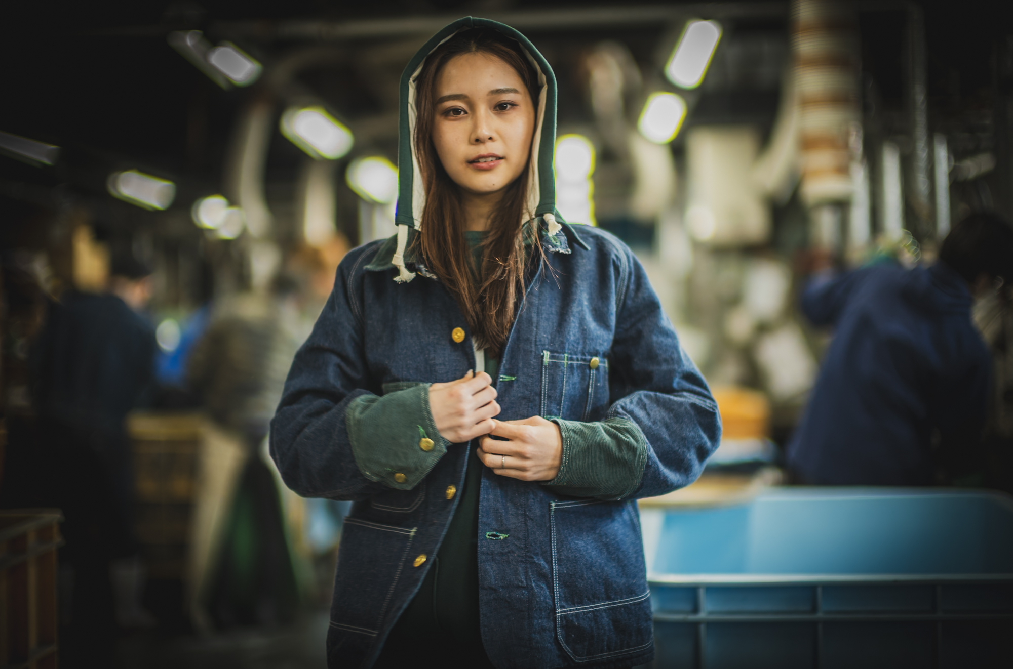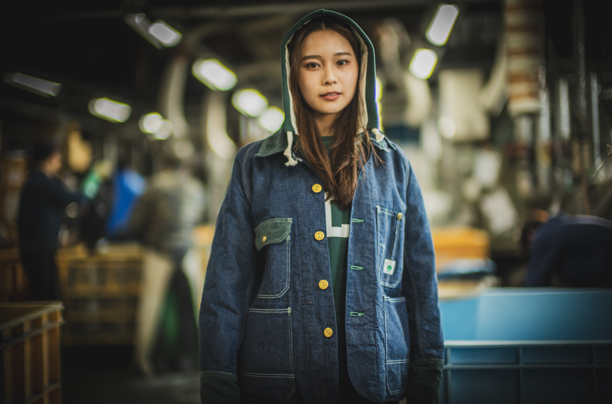 インナーの Hoodie も同じグリーンでリンクさせて着ると、