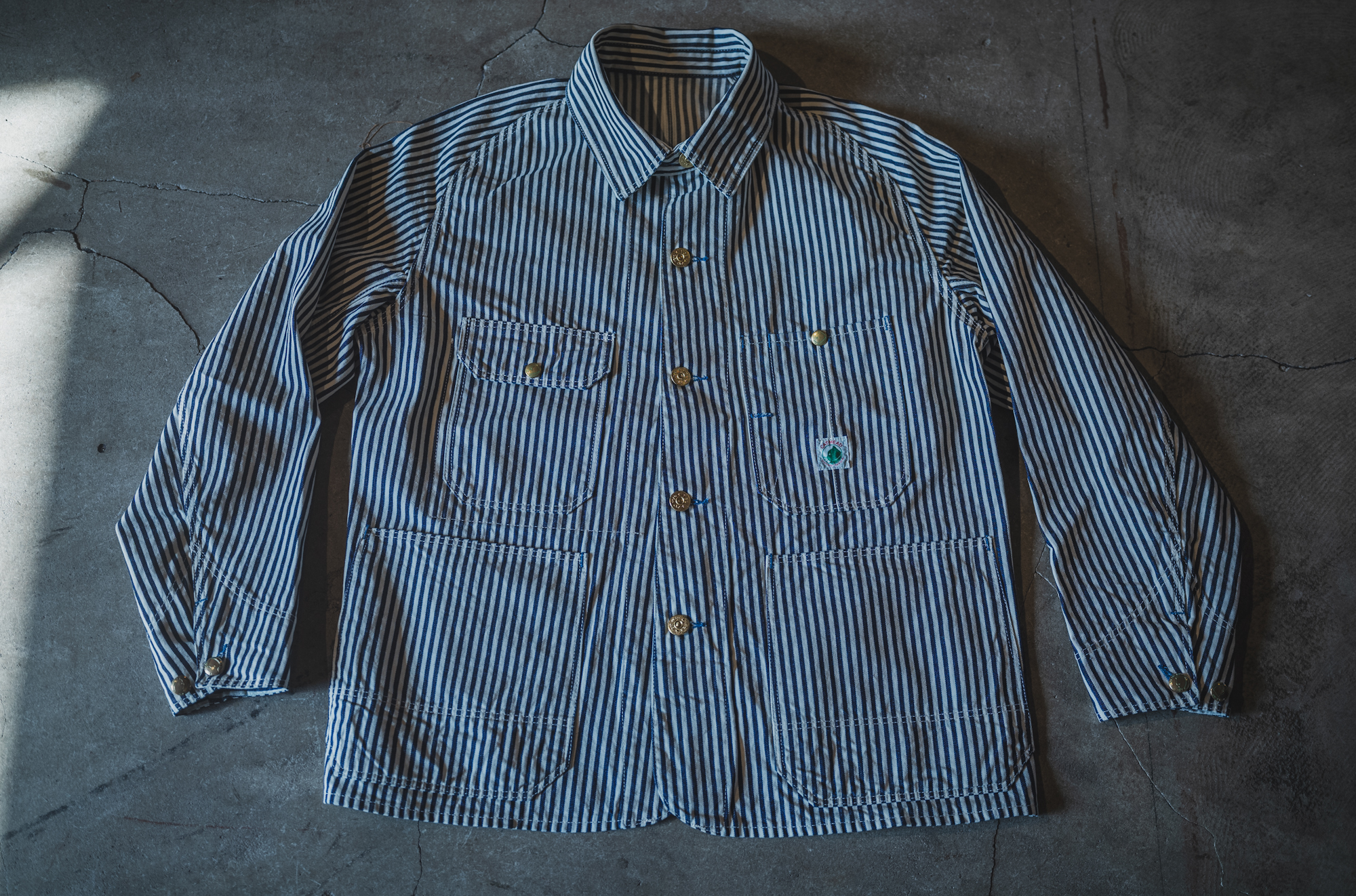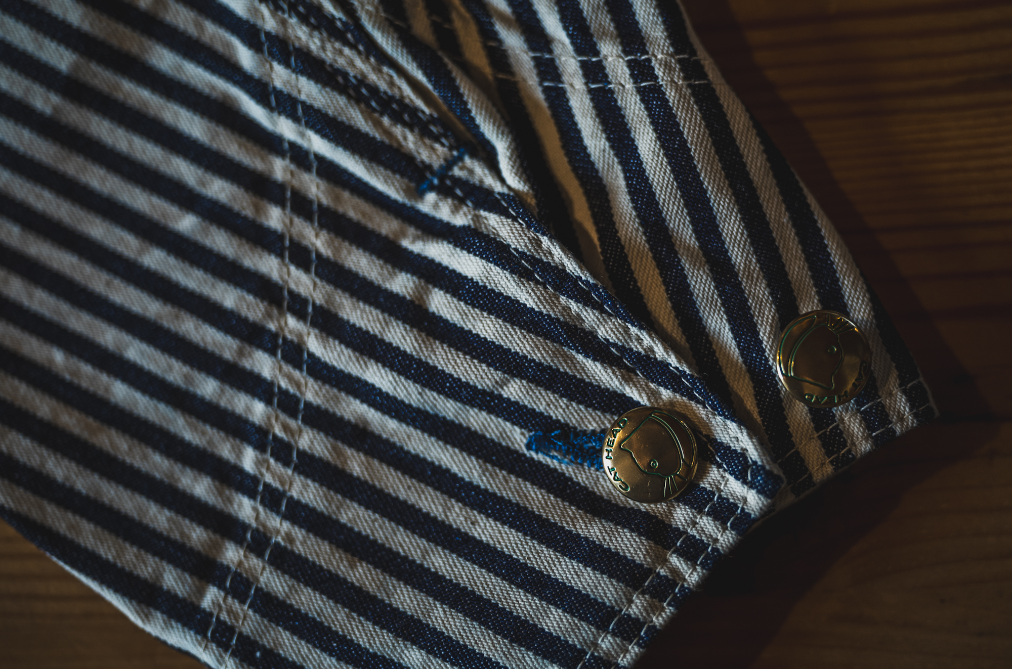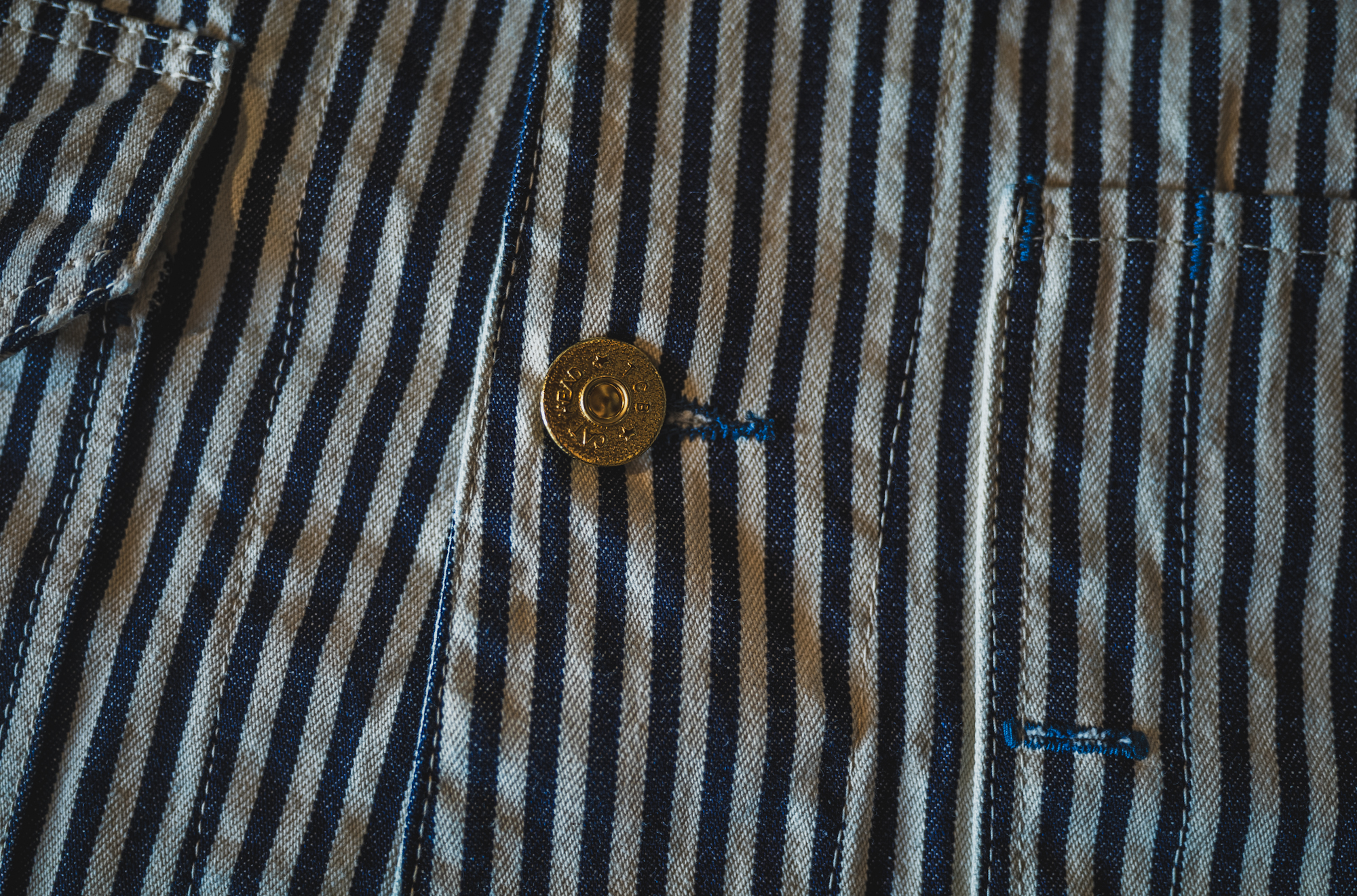 インディゴ×生成りのベーシックなヒッコリーストライプを採用しています。