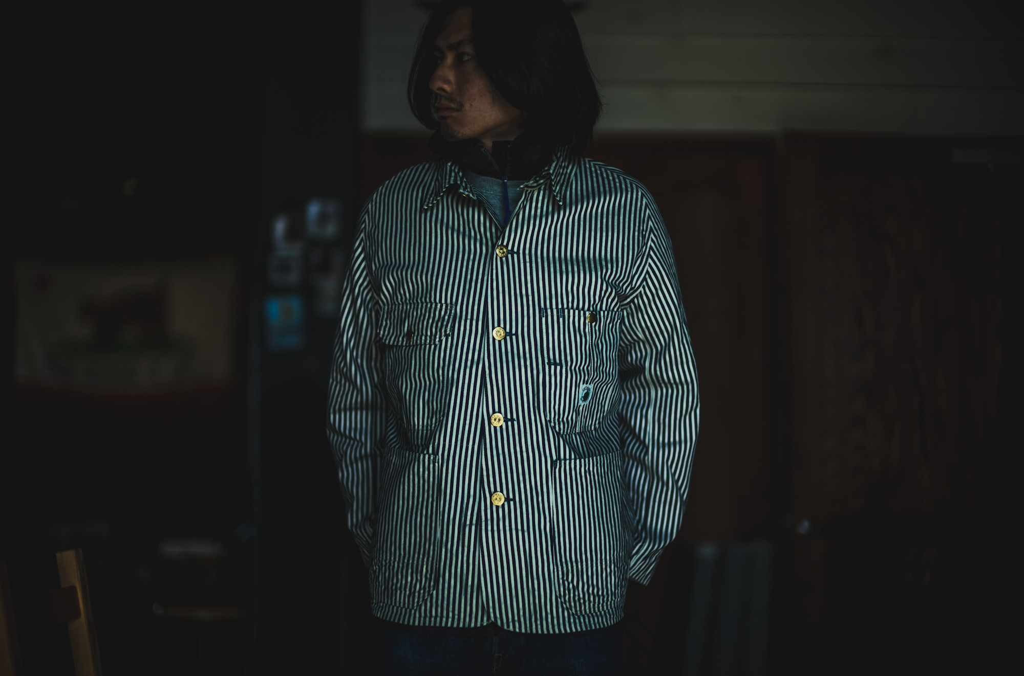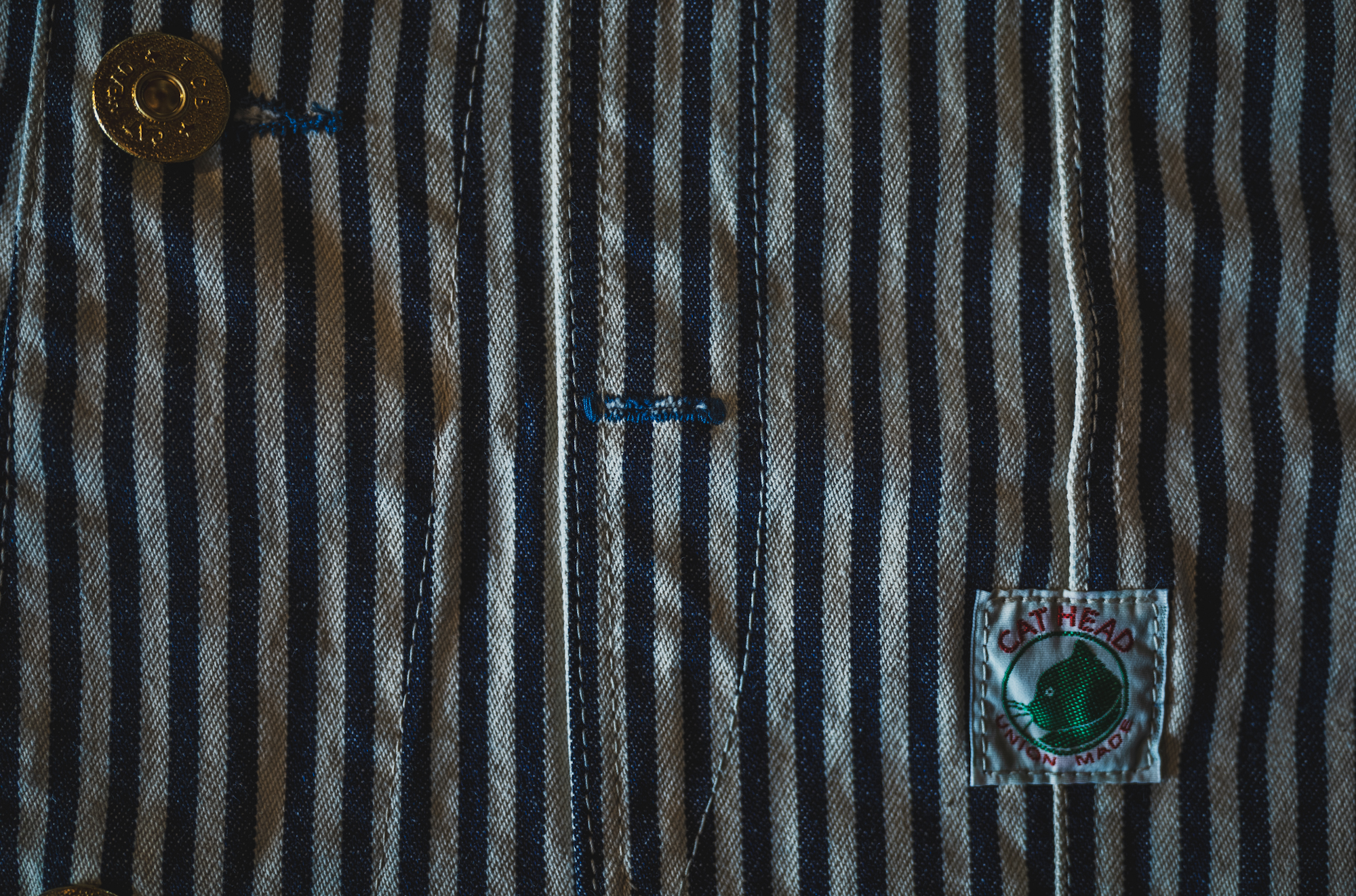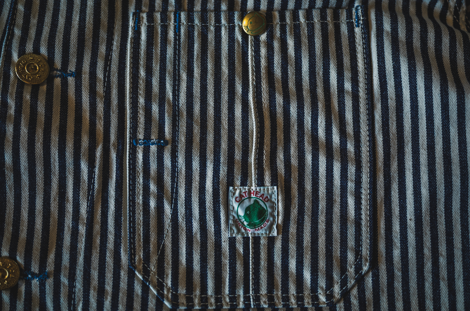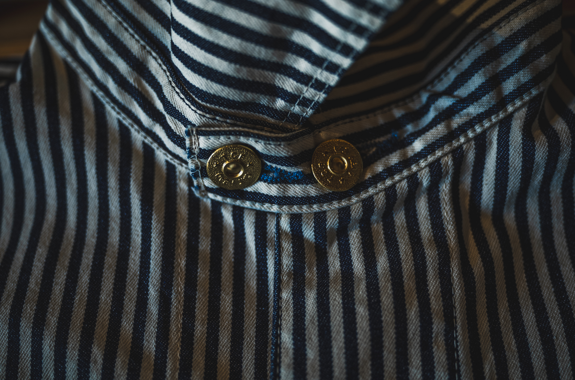 インディゴ×生成りのベーシックなヒッコリーストライプを採用しています。