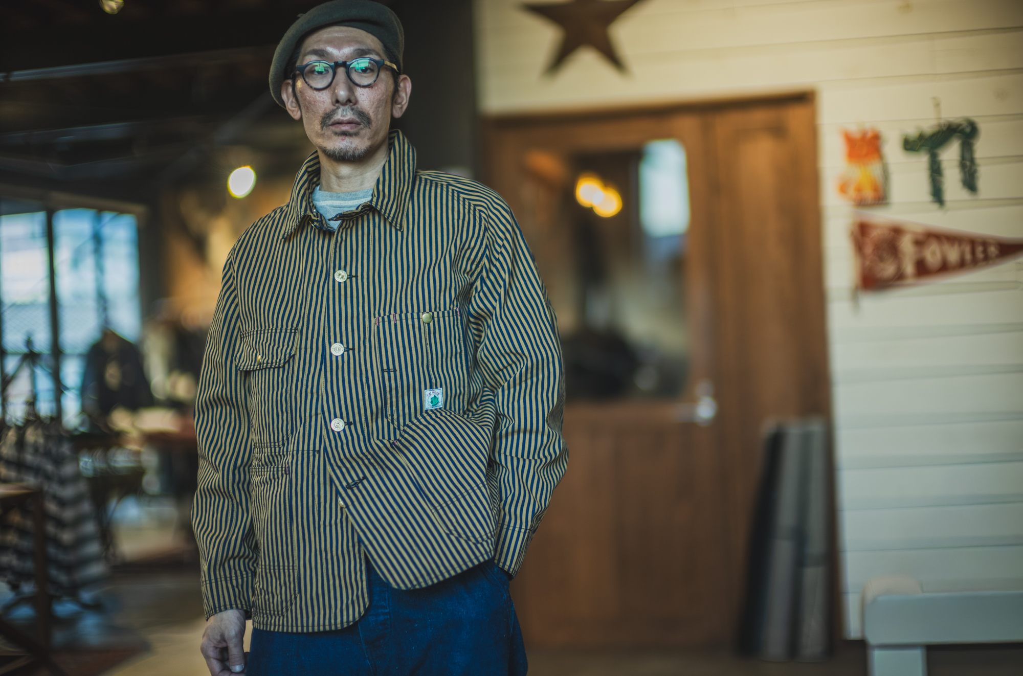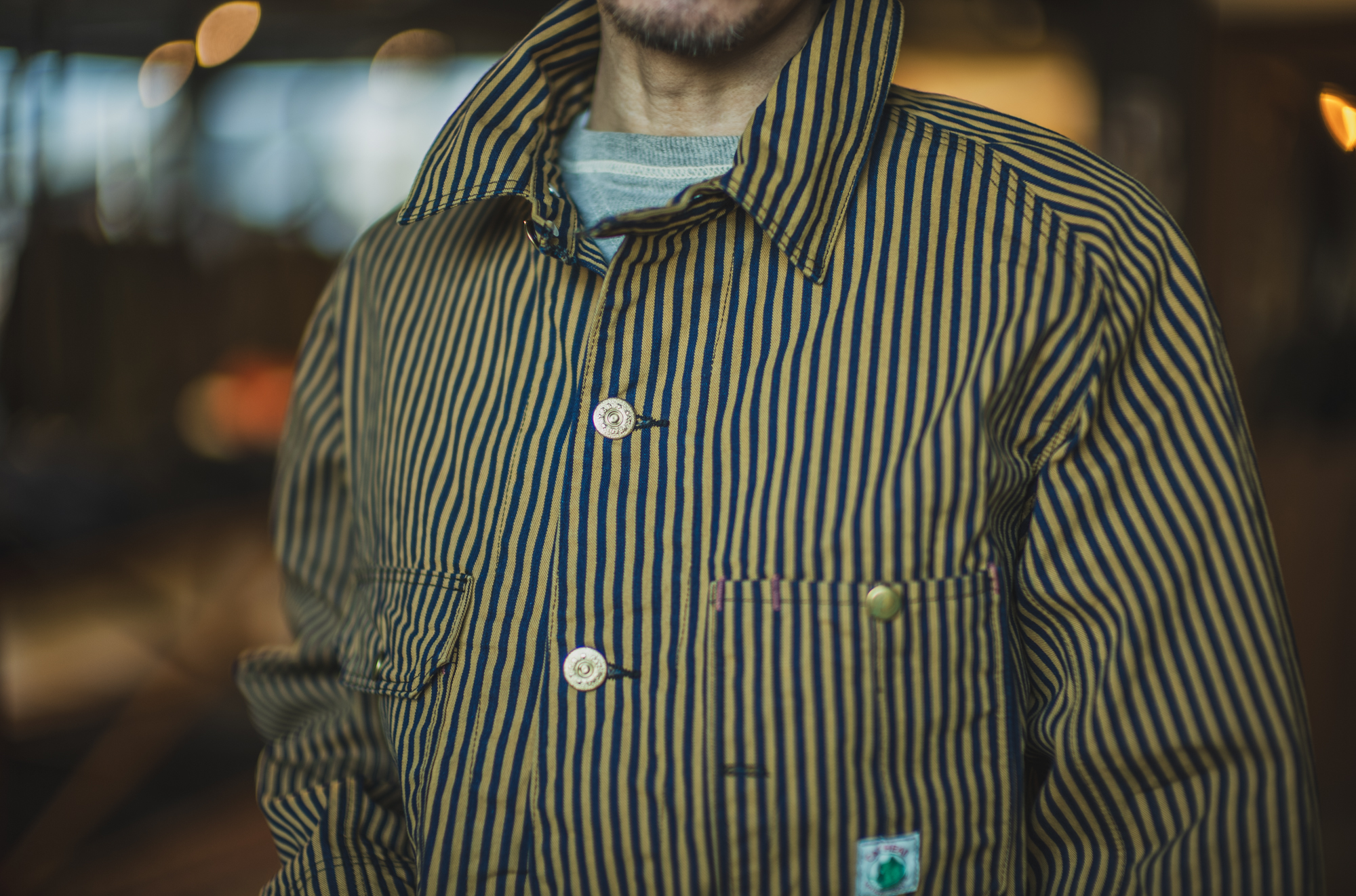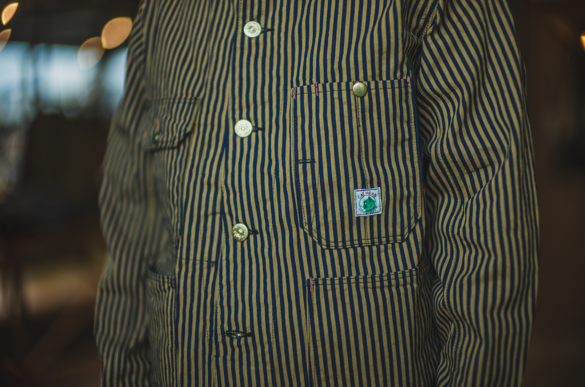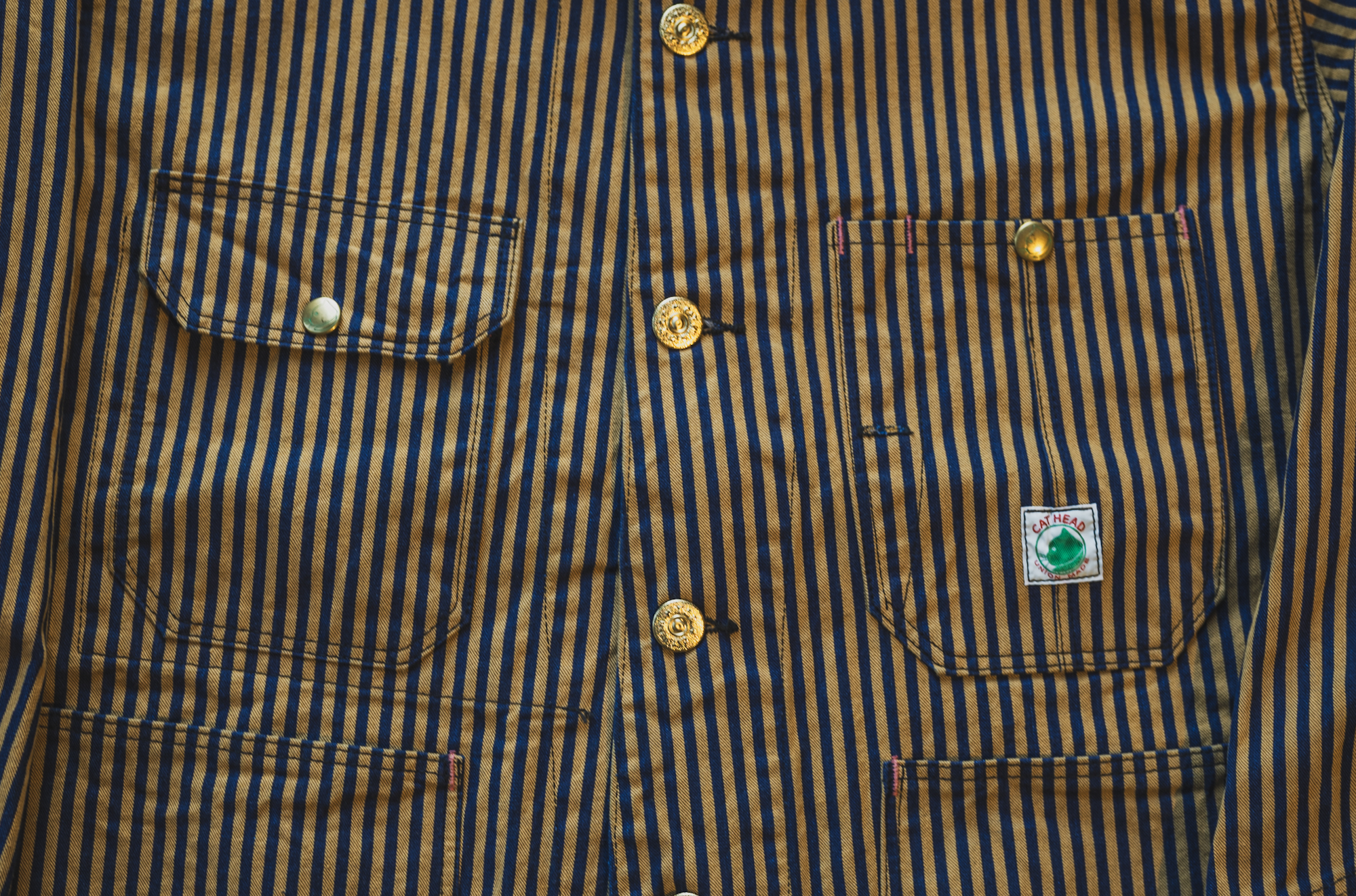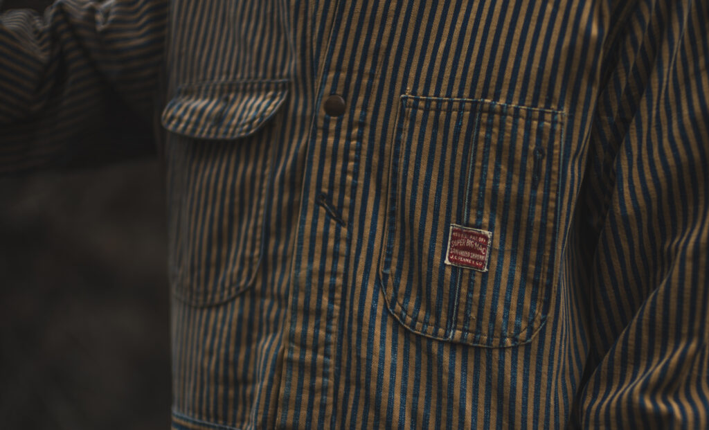 we created a special custom fabric inspired by a vintage brown hickory piece from Super Payday.