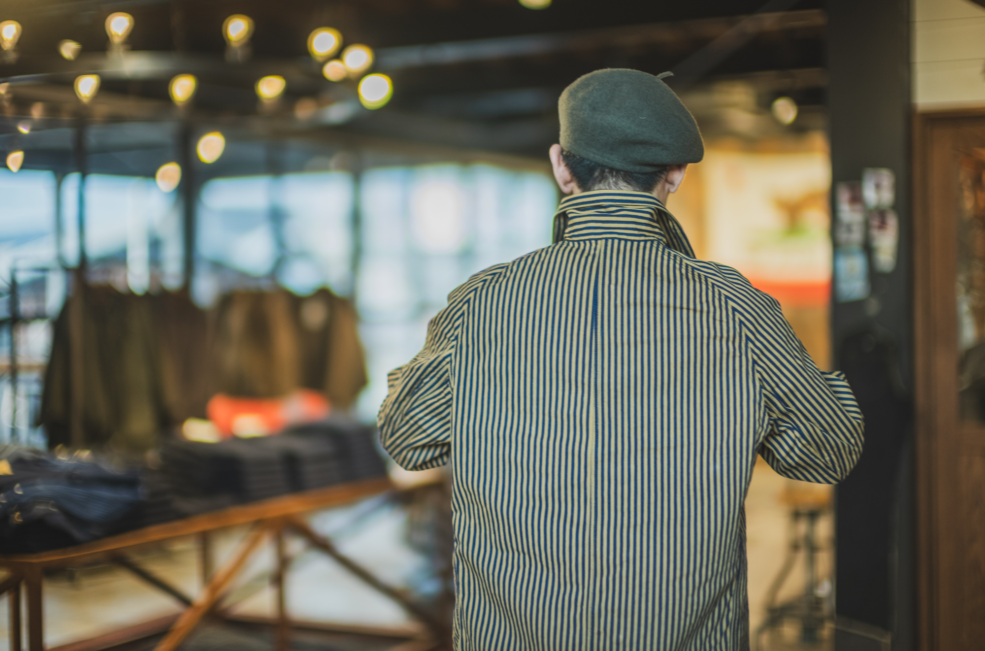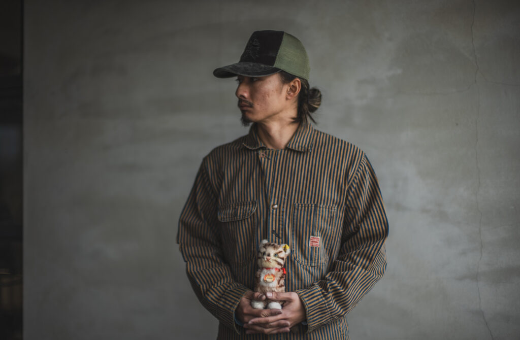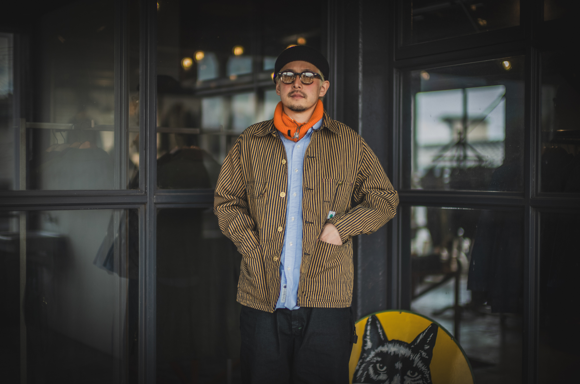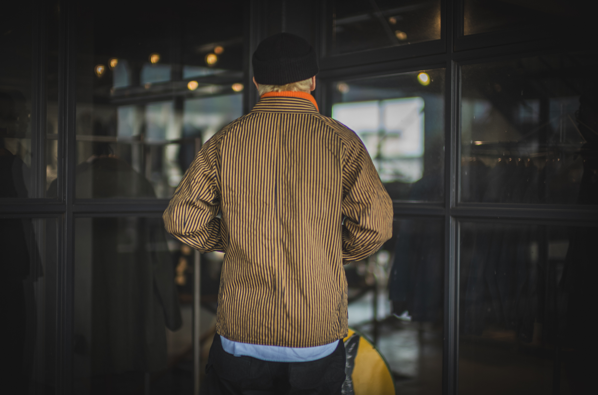 we created a special custom fabric inspired by a vintage brown hickory piece from Super Payday.